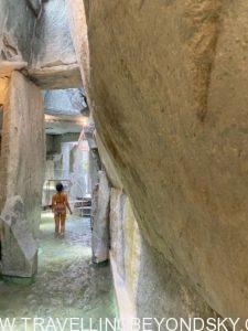 แต่ที่สุดของที่สุดของฉันเลยก็คือ ในส่วนที่เขาทำเลียนแบบโตรกผาหินตามธรรมชาติในสวิตฯ คือมันเป็นบ่อที่ทำเหมือนเป็นคลองน้ำในซอกหินผา กรุผนังด้วยหินก้อนโตๆสูงทั้งผนังและเพดาน ในน้ำนั้นเป็น Kneipp therapy คือเราต้องเดินลุยลงไปในคลองน้ำให้ก้อนหินที่พื้นน้ำนวดเท้า มีบ่อที่เป็นน้ำเย็นเจี๊ยบ เดินลงไปแล้วสั่นสะท้านเหมือนกับนิ้วเท้าจะหลุดออกจากเท้า เดินเสร็จแล้วก็ให้ข้ามไปอีกบ่อหนึ่งซึ่งเป็นบ่อน้ำอุ่น ทีนี้ล่ะ อุณหภูมิที่ต่างกันอย่างมากนี้จะทำให้มีความรู้สึกซ่าๆจั๊กกะจี๊ฝ่าเท้าไล่ขึ้นมาจนถึงต้นขาของเราเลย แปลกดีทีเดียว นี่แหละคือผลของธาราบำบัดอย่างหนึ่ง