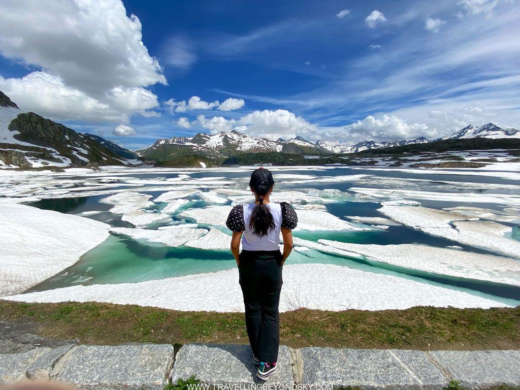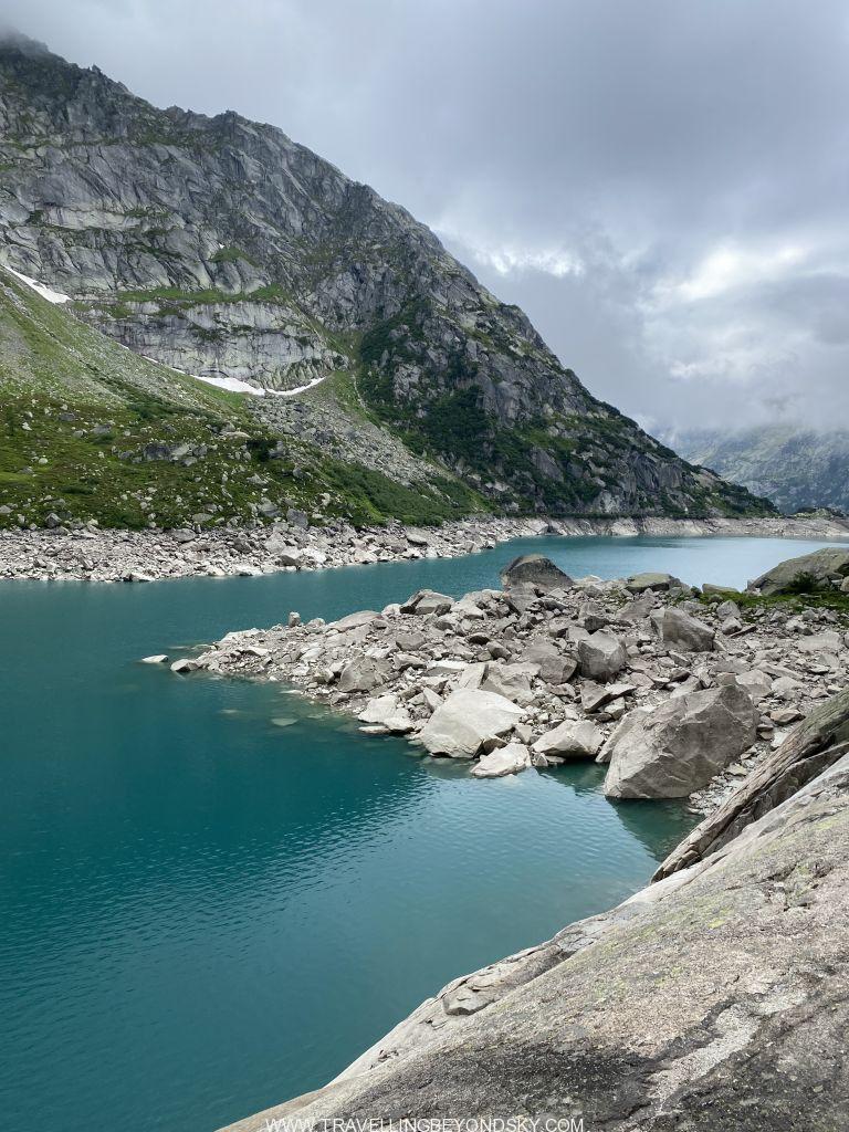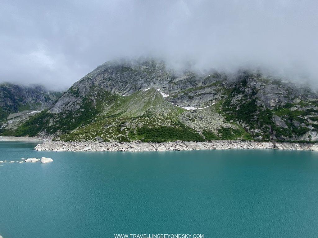 เวลาเราขับรถไปบนเส้นทางบนภูเขาแห่งนี้จะเห็นทะเลสาบสีเขียวอมฟ้าหลายแห่ง ซึ่งอยู่ในระดับความสูงระหว่างภูเขาต่างๆกันไป ทะเลสาบพวกนี้จริงๆเราจะเห็นว่าเป็นอ่างเก็บน้ำที่เกิดขึ้นมาจากการสร้างเขื่อนเพื่อผลิตพลังงานไฟฟ้า แต่ละแห่งล้วนแต่สวยงามจับจิต โดยเฉพาะช่วงปลายฤดูใบไม้ผลิถึงต้นฤดูร้อน เพราะจะมีก้อนน้ำแข็งขาวๆแตกเป็นเสี่ยงๆลอยอยู่บนน้ำสีเขียวอมฟ้า แปลกตาไม่เหมือนทะเลสาบอื่นๆ อย่างเช่นทะเลสาบ Gelmersee ที่อยู่สูงลิ่วบนเขา จะขึ้นไปได้ก็ต้องนั่งรถราง Gelmerbahn ซึ่งเคยเป็นรถรางที่ชันที่สุดในยุโรปขึ้นไป ใช้เวลา 12 นาที ตัวรถราง Funicular นี้เปิดประทุน เวลานั่งต้องหันหน้าออกนอกเขา จึงเห็นวิวเวลาไต่ระดับสูงขึ้นไปเรื่อยๆ สนุกและไม่น่ากลัวเลยแม้จุดที่ชันที่สุดแทบจะตั้งฉากกับพื้น