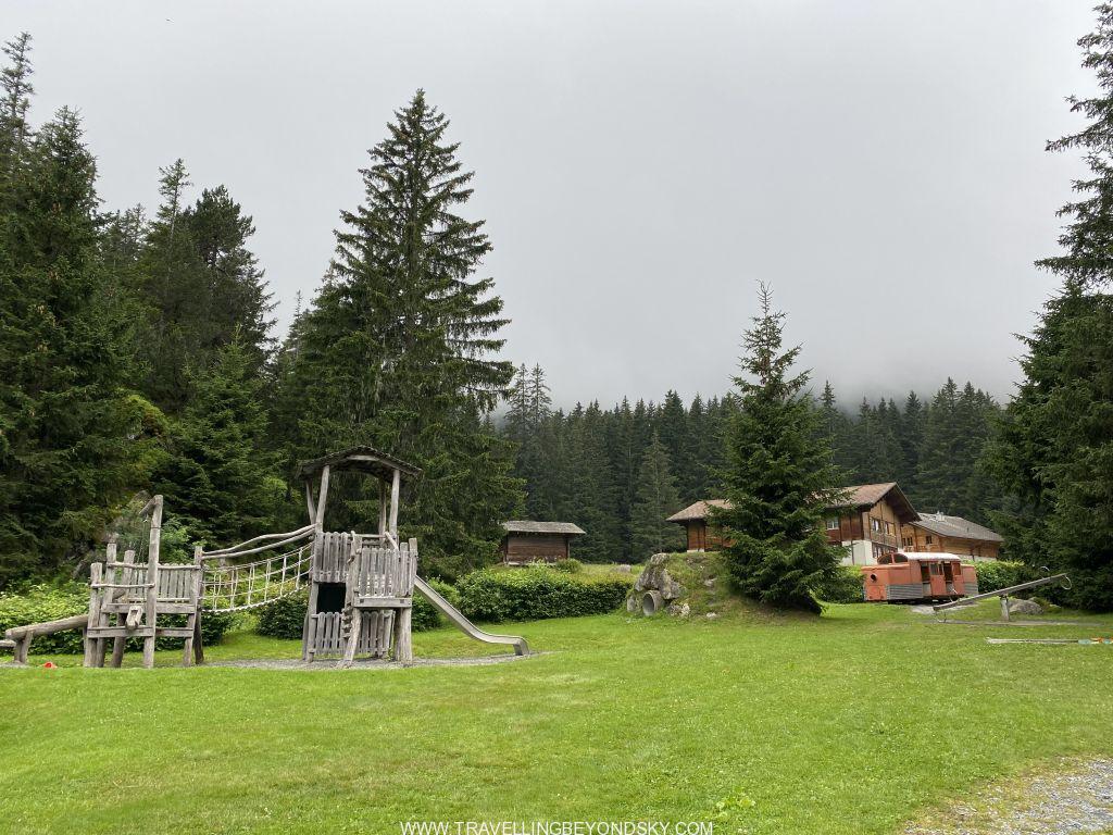 โรงแรมมีบริเวณกว้างมากๆ มีสวนพร้อมเครื่องเล่นให้เด็กๆ และยังเดินไม่กี่นาทีก็ไปถึงสะพานแขวน Handeggfallbrucke ซึ่งอยู่ติดสถานีรถราง Gelmerbahn เลย เรียกว่าหากพักโรงแรมนี้ ก็เดินข้ามสะพานแขวนให้เสียวเล่นไปขึ้นรถราง Gelmerbahn ได้เลย พักที่เดียวเที่ยวได้ครบสูตร เหมาะกับทั้งคนชอบเดินและคนไม่ชอบเดิน