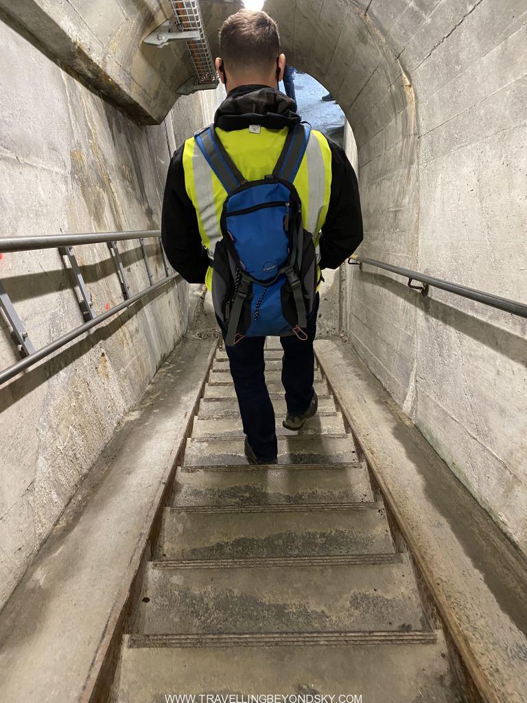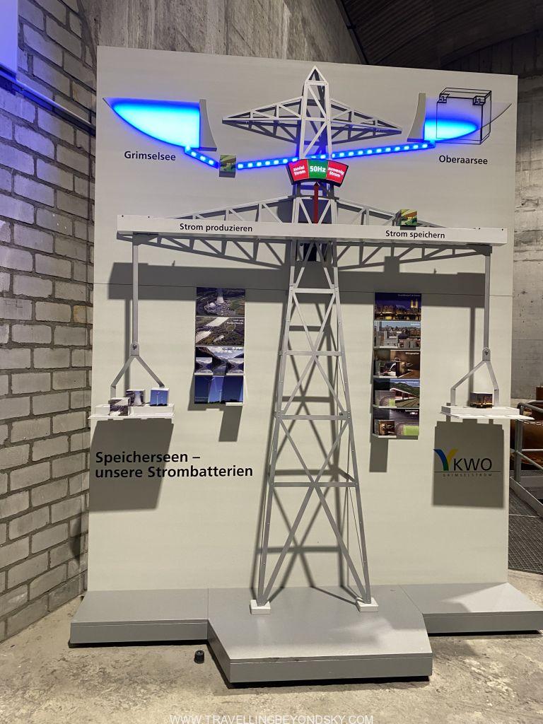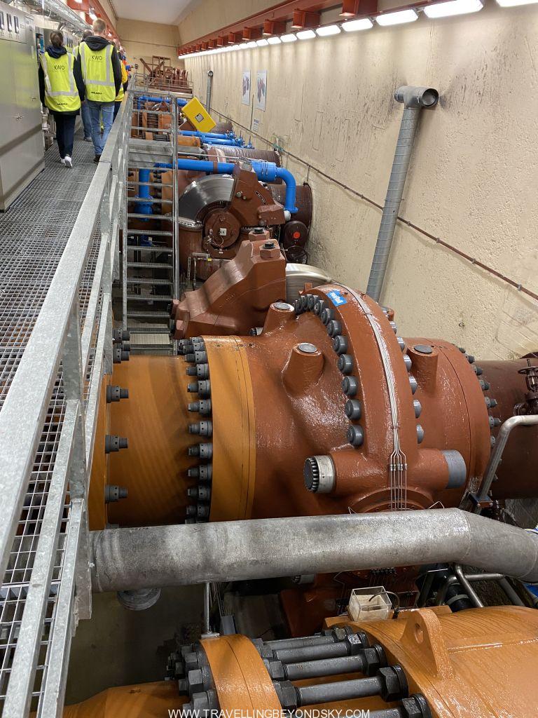วันต่อมาเราไปทัวร์โรงงานผลิตไฟฟ้าด้วยกระแสน้ำกัน ฟังดูน่าเบื่อแต่จริงๆแล้วไม่น่าเบื่อเลย เป็นประสบการณ์ใหม่ที่แตกต่างอย่างมาก ได้ความรู้อันน่าทึ่งอีกด้วยเราซื้อตั๋วออนไลน์และไปถึงจุดนัดพบที่ด้านหน้าของโรงแรม Grimsel Hospiz ซึ่งตั้งอยู่บนเกาะกลางทะเลสาบโดยสามารถขับรถข้ามสันเขื่อนไปได้ เนื่องจากในหน้าหนาวถนนที่ขึ้นมาบนภูเขานี้จะถูกตัดขาดจากภายนอกทั้งหมดด้วยหิมะ การที่จะมาโรงแรมนี้ได้จึงต้องใช้เส้นทางที่เป็นถนนใต้ดินซึ่งอยู่ลึกลงไปถึงใต้ทะเลสาบ และเป็นถนนที่โรงงานพลังงานไฟฟ้าใช้สัญจรทำงานกัน และทัวร์นี้จะพาชมถนนใต้ท้องทะเลสาบนี้ด้วย