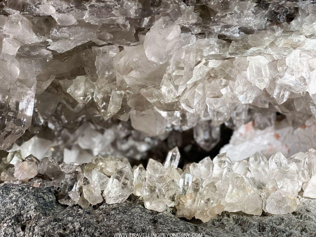 ก่อนจบทัวร์คุณลุงพาไปดูไฮไลท์อีกอย่าง นั่นก็คือถ้ำคริสตัล คือตอนที่เขาขุดเจาะใต้ดินเพื่อทำเขื่อนนี้ปรากฏว่าพบสายคริสตัลอยู่ในชั้นหินมากมายซึ่งเกิดโดยธรรมชาติ มีห้องที่เอาคริสตัลเหล่านี้มาใส่ตู้ทำเป็นนิทรรศการให้เราชม และมีห้องที่กั้นเป็นกระจกให้เราชมสายคริสตัลที่ยังอยู่ในชั้นหินใต้ดินด้วย แต่ละแท่งใหญ่ใสแหนว อัดแน่นอยู่ด้วยกัน สวยมากๆทัวร์นี้ได้ความรู้ใหม่ที่ไม่เคยรู้มาก่อน และได้ความตื่นเต้นในการได้ไปนั่งรถทะลุทะลวงไปตามถนนใต้อ่างเก็บน้ำด้วย ไม่แปลกเลยที่ Grimselpass เป็นจุดหมายท่องเที่ยวที่ทั้งสวยทั้งสนุกน่าสนใจของคนสวิส และนักท่องเที่ยวต่างประเทศยังมาไม่มาก เสมือนเป็นความลับในหุบเขาของคนสวิสนั่นเอง