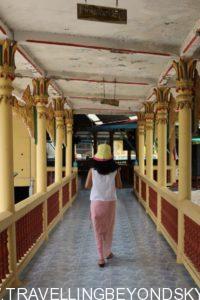 ขณะที่เราชมความงามภายในของวิหารอยู่ก็มีผู้ชายเดินมาแนะนำตัวว่าเป็นมรรคนายก เรามารู้ทีหลังว่าชื่อพี่อ้วน เข้ามาเล่าประวัติต่างๆเกี่ยวกับวัดนี้ให้เราฟัง และชี้ชวนให้ชมสิ่งต่างๆพร้อมอธิบายเรื่องราวอย่างละเอียด เช่นพระพุทธรูปที่เห็นเหนือกรอบประตูนั้นเดิมเป็นพระปางนาคปรก หากแต่นาคได้ตกลงมา จึงเหลือแต่พระพุทธรูปประทับอยู่ด้านบน
