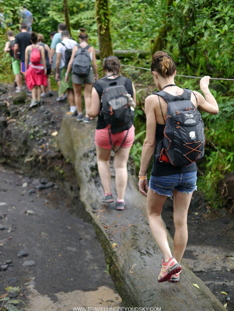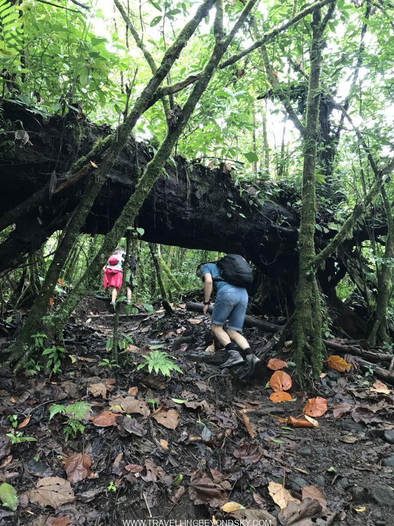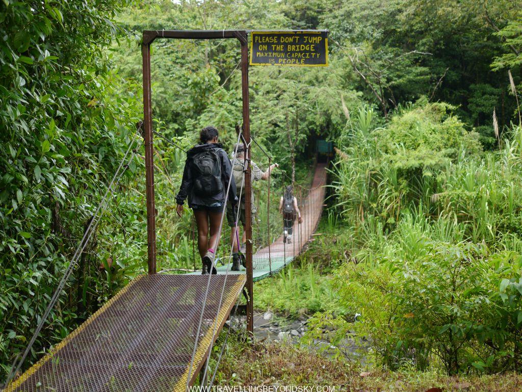 ฉันไปเที่ยวคอสตาริก้ามาประมาณสิบวัน 2-3 วันแรกก็ลุยๆ เละๆ อยู่กับการเดินป่า ได้ไปเดินรอบภูเขาไฟ ไปชมน้ำตก ตอนเดินในป่าดงดิบรอบภูเขาไฟที่ Arenal and Chato เป็นเวลา 6 ชั่วโมงนั้นโหดมากถึงมากที่สุด เพราะนอกจากทางจะเดินยากแล้ว ฝนยังกระหน่ำลงมาเป็นชั่วโมงๆ ไม่หยุด เราก็ต้องเดินไปอย่างนั้น พื้นเป็นขี้โคลนลื่นมาก ต้องลุยลงไป ดีที่เอาไม้ค้ำเดินมาเองด้วยจึงผ่อนความยากไปได้ แต่บางทีก็ยังต้องใช้มือโหนเถาวัลย์ แล้วตะกายดินขึ้นไป บางทีต้องลงเดินลุยน้ำข้ามลำธารลึกถึงต้นขา เปียกฝนอยู่แล้วก็ไม่เป็นไร บางทีต้องไต่ต้นไม้ที่พาดข้ามแม่น้ำไปอีกฝั่ง เละไปหมดเลย รองเท้าบู้ตเดินป่าเปียกโชกไปด้วยน้ำและโคลน มื้อกลางวันต้องยืนกินแซนด์วิชที่ห่อมาแต่เปียกหมดแล้วตรงใต้ต้นไม้กลางฝนกระหน่ำ