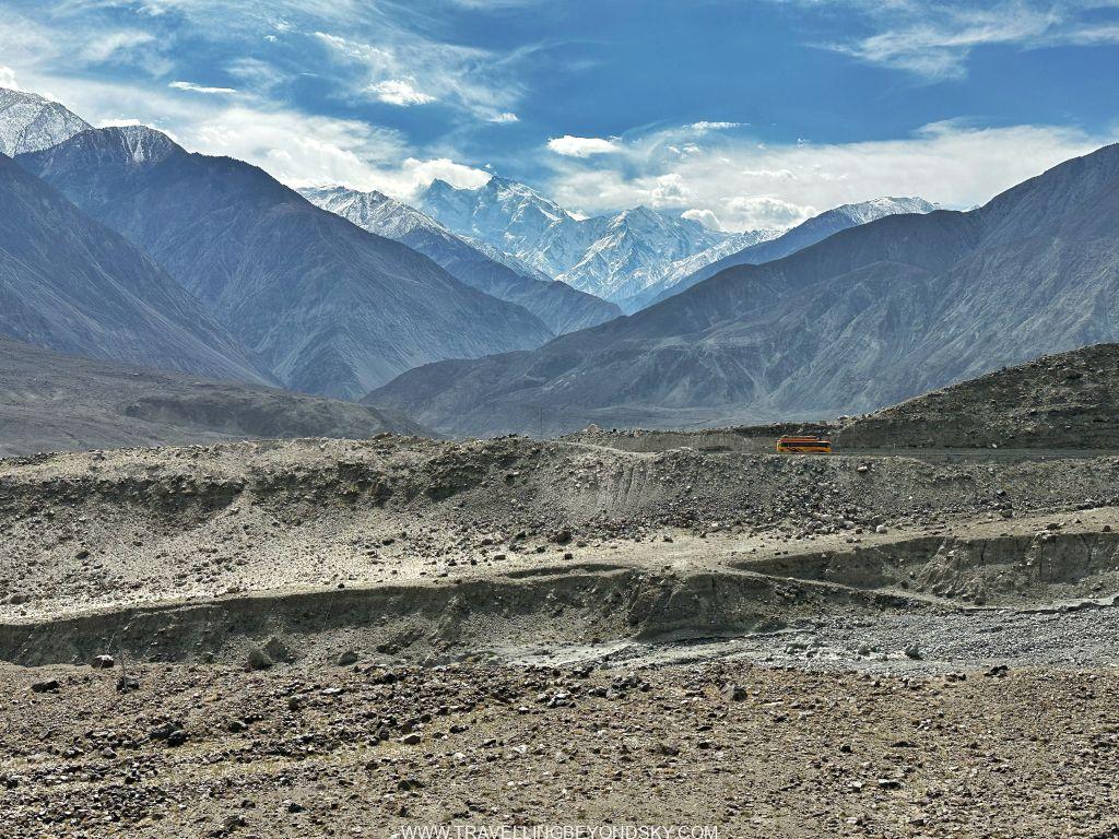 ตลอด 2 ชั่วโมงกว่านี้วิวสวยขึ้นเรื่อยๆ จนเห็นเทือกเขา Nanga Parbat มีหิมะขาวคลุมยอดอยู่ นี่คือยอดเขาที่สูงเป็นอันดับที่ 9 ของโลก และเป็นอันดับ 2 ของปากีสถานรองจากยอด K2 ด้วยความสูง 8 พันกว่าเมตร ชื่อ Nanga Parbat นี้แปลว่า Naked mountain เพราะมันโล้น ต้นไม้อะไรขึ้นไม่ได้ และมีชื่อเล่นว่า Killer Mountain เพราะนักปีนเขาหลายคนต้องมาสังเวยชีวิตที่นี่ จนถูกพิชิตครั้งแรกในปี 1953 โดยชาวออสเตรียเพียงเดือนเดียวหลังจากที่ Everest ถูกพิชิต