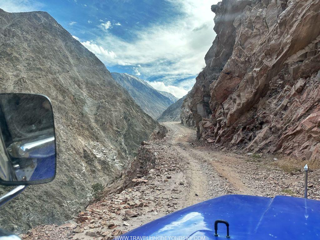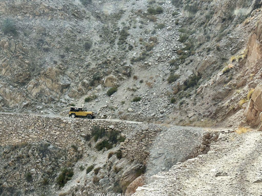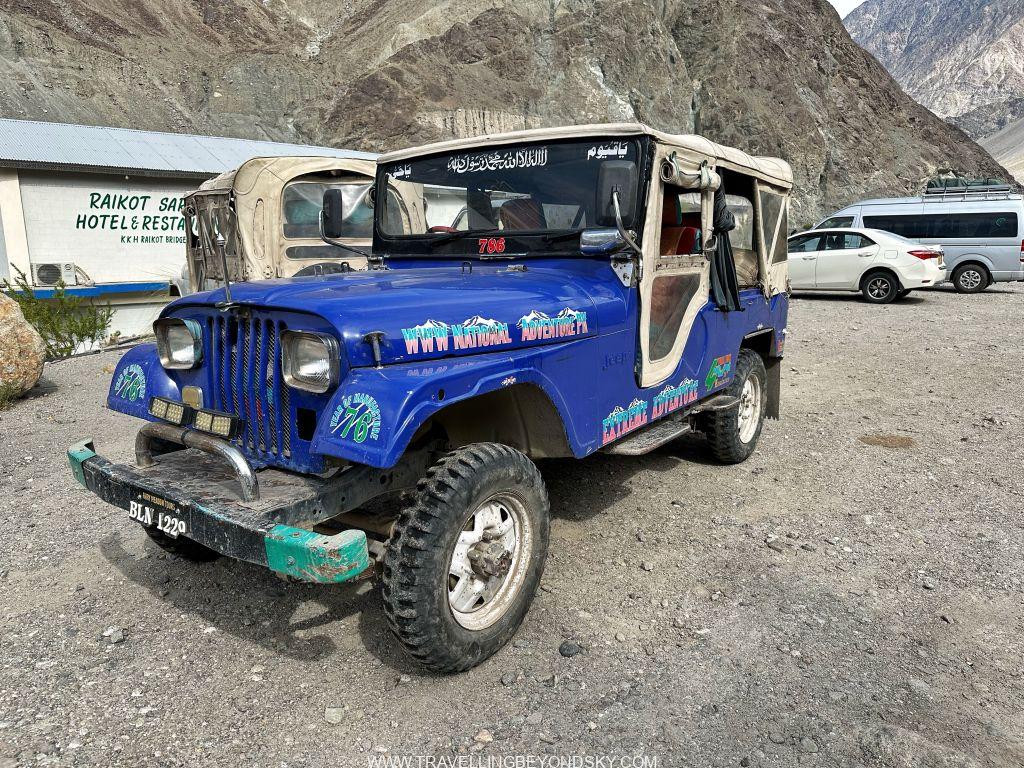 จากเมือง Gilgit เราขับรถไปตาม Karakoram Highway 1 ชั่วโมง พอมาถึง Raikot Bridge แล้วก็ต้องเปลี่ยนเป็นรถจี๊ป เพราะทางจากนี้ไม่มีทางที่รถขับเคลื่อนสี่ล้อทั่วไปจะไปได้เลย