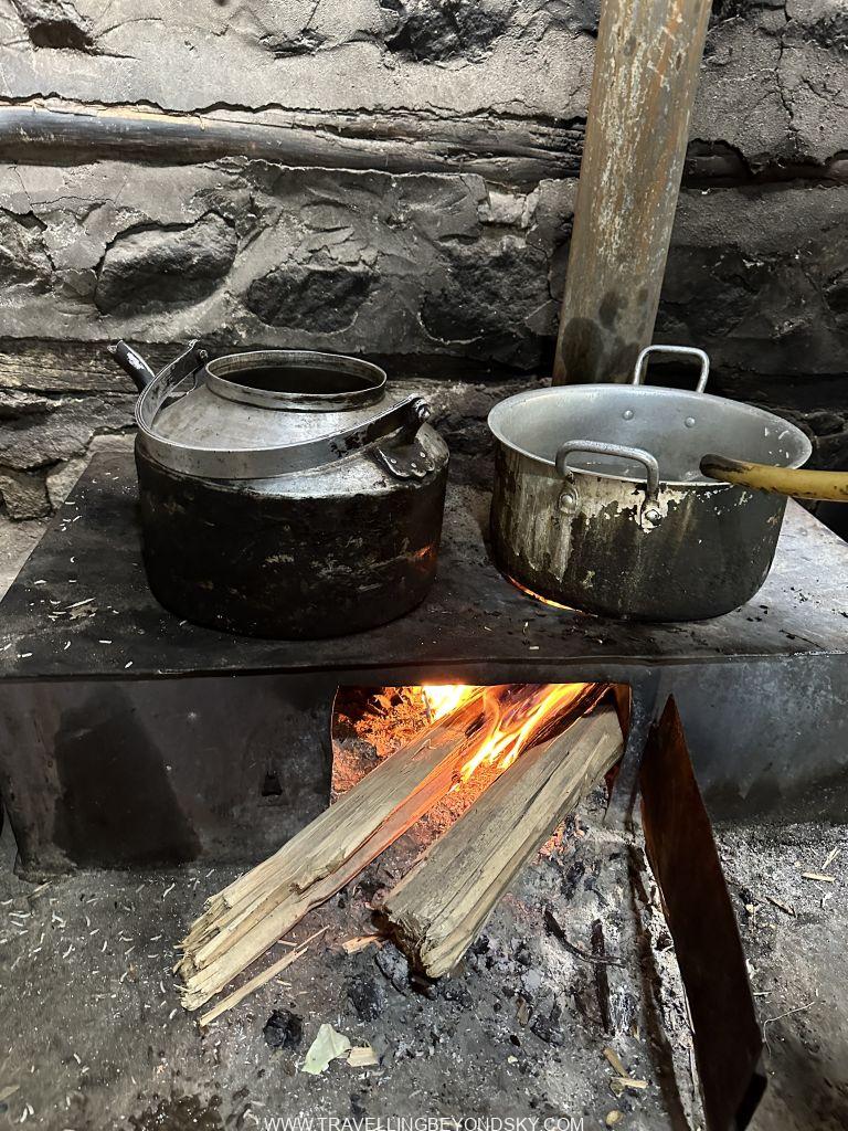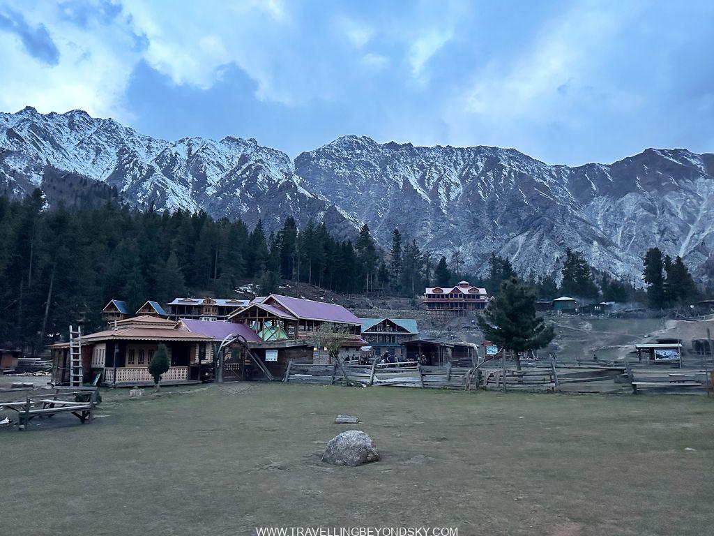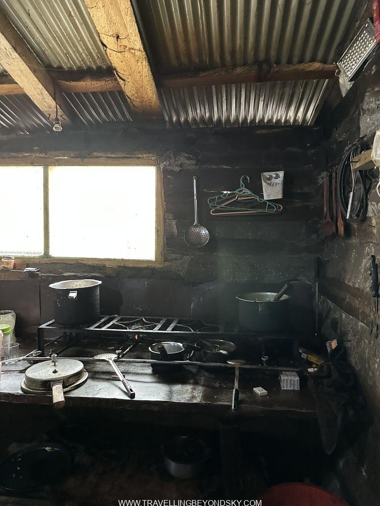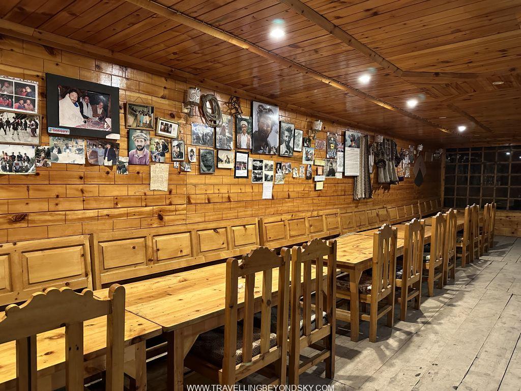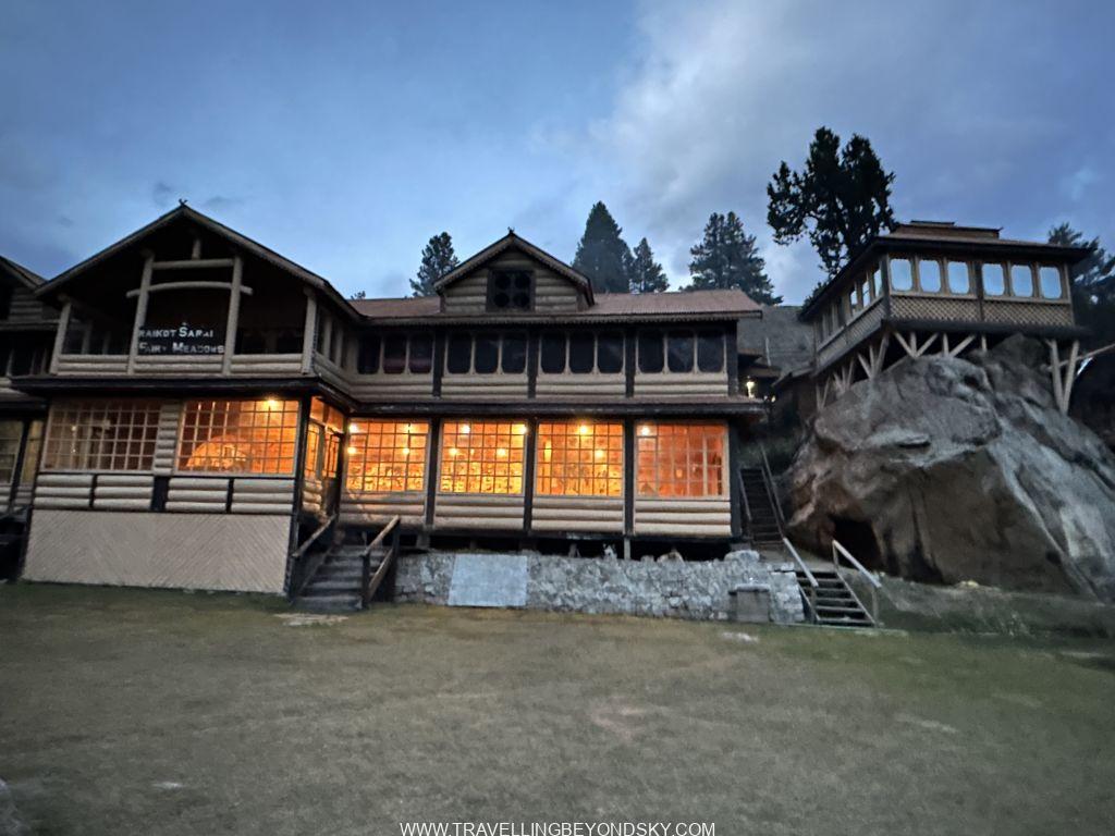 เรามาถึงที่พักด้านบนเขาตอนพระอาทิตย์ตกพอดี พอมืดอากาศก็หนาวทันที น้ำอุ่นมีให้อาบแค่ครึ่งชั่วโมง ห้องนอนไม่มีฮีตเตอร์ ดีที่ห้องนั่งเล่นรวมมีเตาให้ความอบอุ่นตรงกลาง เราอาบน้ำแล้วจึงมาเอกเขนกและกินข้าวเย็นกันที่นี่ ระหกระเหินมาทั้งวันยังไม่ได้เห็น Fairy Meadows เลย ดูสิว่ายากลำบากขนาดไหน พรุ่งนี้เถอะ ได้เจอกันแน่