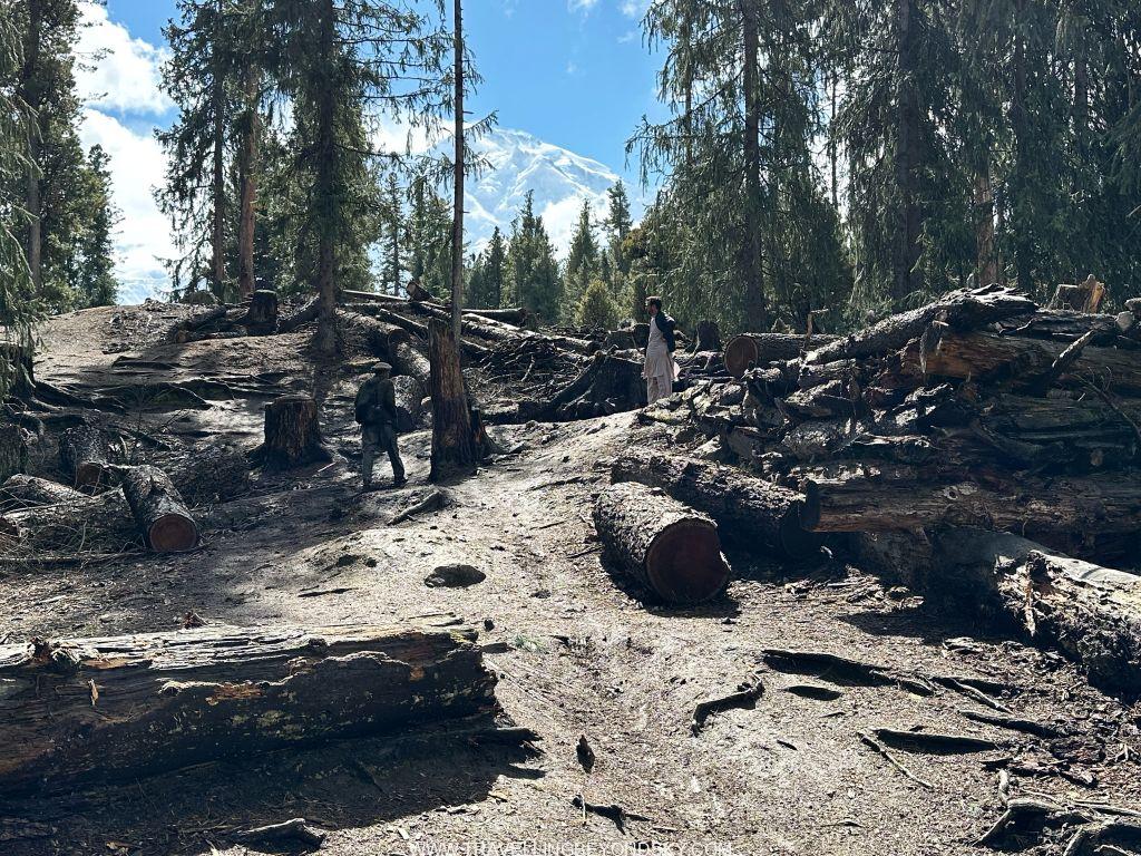 คือฉันได้มาเห็น Fairy Meadows สมใจก็ดีใจมาก แต่ๆๆๆๆ พอได้เดินชมรอบๆ แล้ว เราตกใจทีเดียว คือมุมที่วิวสวยดังฝันนั้นมันมีมุมเดียว กับตรง Reflection lake อีกนิดแค่นั้น ที่จินตนาการไว้ว่าจะได้เห็นทุ่งกว้างเดินวนถ่ายรูปได้มากมายหายมุมจนอิ่ม มันไม่ใช่เลย แต่ที่ทั้งตกใจทั้งเศร้าใจก็คือ ในบริเวณนี้มีการก่อสร้างรีสอร์ตใหม่ๆ มากมายหลายแห่งติดๆ กันเต็มไปหมด แทบทั้งหมดไม่ได้มีดีไซน์ที่จะเข้ากับธรรมชาติรอบตัวเลย และจำนวนเยอะมากจนตกใจว่าถ้าทุกแห่งเต็มหมดมันจะมีนักท่องเที่ยวมากมายสักเท่าไรบนทุ่งหญ้าของนางฟ้านี้ ความสวยสงบคงไม่เหลือแน่ๆ ที่อยากจะร้องไห้ก็คือ รีสอร์ตทั้งหลายนี้ตัดเอาไม้ในป่าบนเขานี้แหละมาสร้างอาคาร ดูแล้วมันเป็นการตัดไม้แบบใครใคร่ตัด ตัด ต้นไม้ในป่าโดนโค่นมากมายจนโกร๋น ซุงกองระเกะระกะ น่าเป็นห่วงมากๆ ฉันได้คุยกับไกด์ท้องถิ่นคนหนึ่งซึ่งพานักท่องเที่ยวขึ้นมา Fairy Meadows นี้มาหลายสิบปี เขาคอนเฟิร์มว่ามันเป็นการตัดไม้แบบไร้ระบบจริงๆ ชาวบ้านเห็นโอกาสทำเงินจากการท่องเที่ยวที่เป็นที่รู้จักมากขึ้น ก็พากันสร้างรีสอร์ตโดยเข้าป่าไปตัดไม้มาเลย แม้จะมีคนโดนจับเพราะการนี้ แต่การก่อสร้างก็ยังเร่งดำเนินไปไม่หยุด ฉันเดินเล่นไปทั่วบริเวณยามสาย ทั้งมลภาวะเสียงจากเลื่อยไฟฟ้า เสียงก่อสร้าง และมลภาวะทางสายตาจากอาคารต่างๆ ที่ยังสร้างไม่เสร็จ และที่พอจะเป็นรูปร่างแล้วฉันก็ว่าไม่สวยเลย เห็นแล้วเศร้าใจมากๆ Deforestation การทำลายป่า และ Overtourism ส่องแววชัดมาก น่าเป็นห่วงจริง