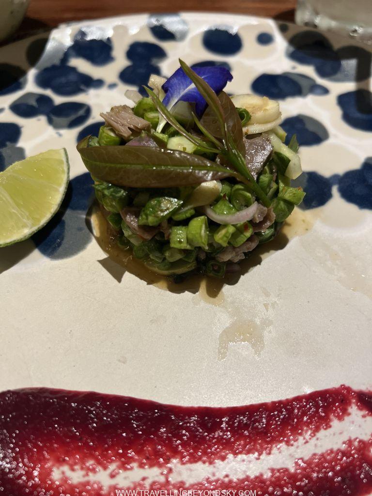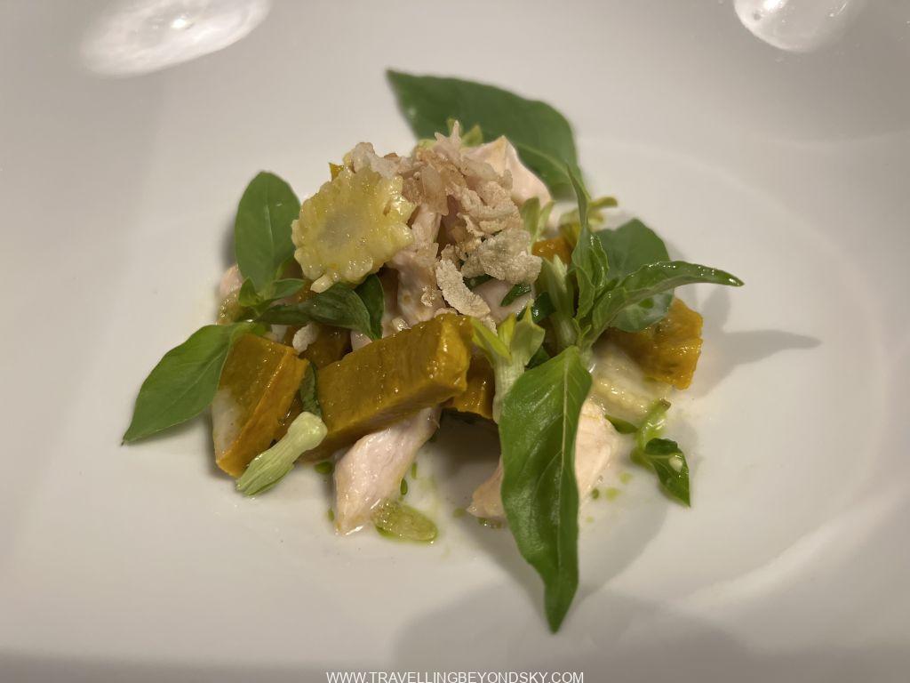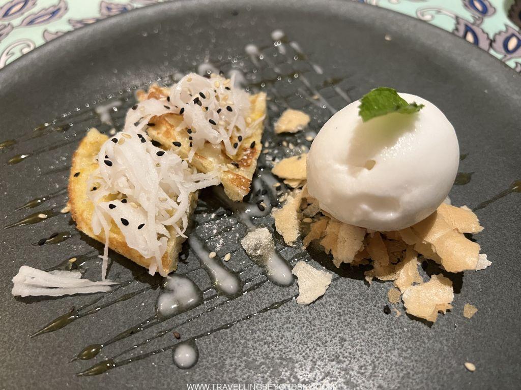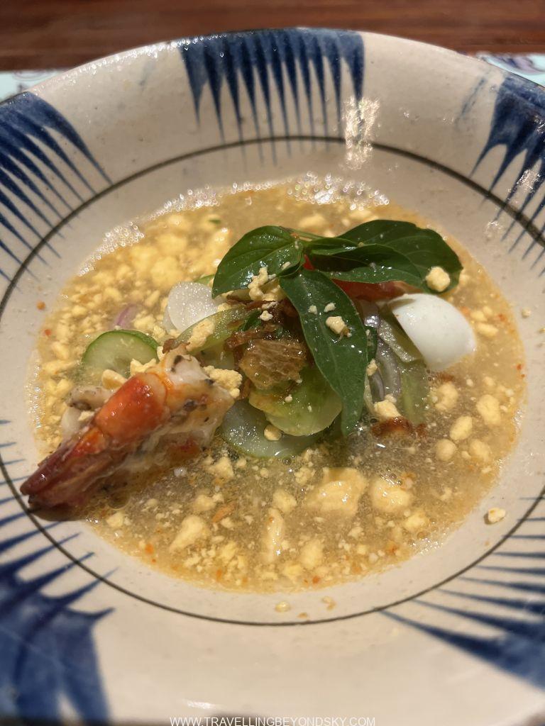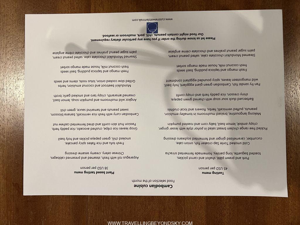 ส่วนร้านที่สองอยู่ลึกลับซับซ้อนสุดซอยลูกรังแทบจะหาไม่เจอ ชื่อ Lum Orng เป็นร้านแนวคิด Farm to table ก็เลยต้องอยู่ในสวนผักละมัง ร้านนี้เลยยิ่งเน้นผักและสมุนไพร ฉันก็อธิบายไม่ถูกว่าอาหารทั้งสองร้านนี้มันเป็นอะไรบ้างเพราะมันเป็นฟิวชั่น เลยถ่ายรูปเมนูมาให้ดูกันเอง แต่ที่แน่ๆ มีคล้ายกับแตงโมปลาแห้งด้วย และมีแกงเลียง มีห่อหมก ส่วนขนมก็มีคล้ายบ้าบิ่นกับไอศกรีมกะทิ และแถมตบท้ายด้วยผลไม้จิ้มพริกกับเกลือ สนุกดีได้กินอะไรแปลกๆ และเห็นว่าเขมรเขาก็เริ่มพัฒนามี Fine Dining และ Creative Cuisine เหมือนกันบ้างแล้ว อยากรู้จังว่าอีก 19 ปีกลับไปอีกครั้งจะเป็นอย่างไร