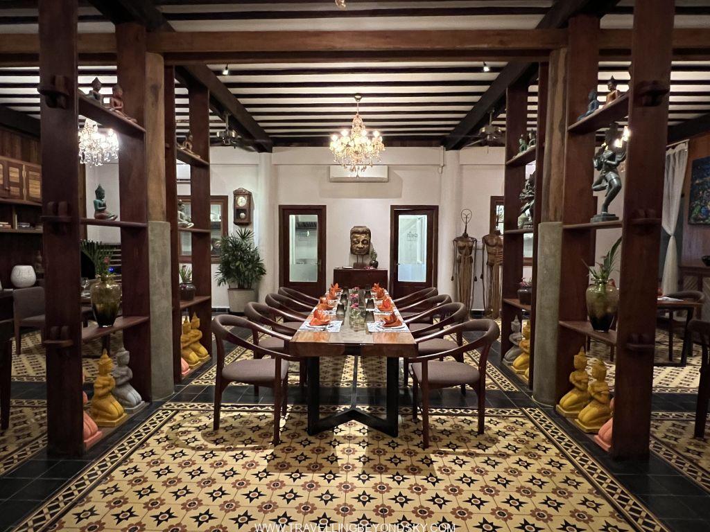 สำหรับร้านอาหารมีสองร้าน ห้องอาหารเช้านั้นดีมากๆ มีทั้งส่วนที่เป็นบุฟเฟ่ต์และอะลาคาร์ทให้สั่งได้ตามใจ อร่อยทุกอย่างทั้งอาหารฝรั่งและอาหารเอเชีย อันนี้ให้คะแนนเต็มไปเลย แต่สำหรับมื้ออื่นๆ นั้นทางเลือกค่อนข้างจำกัด เพราะจะเป็นเมนูเดียวกันทั้งกลางวันและเย็น ซึ่งก็เป็นเมนูธรรมดาไม่มีให้เลือกมาก ส่วนร้านอาหารอีกร้านหนึ่งจะเป็นเฉพาะเซ็ตเมนูเราจึงไม่ได้ลอง ที่น่าเสียดายอีกอย่างก็คือเมนูเครื่องดื่มไม่เยอะไม่หลากหลายเท่าที่ควรทั้งๆ โรงแรมมีจุดให้นั่งเล่นชิลล์ๆ มากมาย ถ้ามีเครื่องดื่มดีๆ คงนั่งดริ้งค์กันไปยาวๆ ไม่หยุดเลย แต่ก็ไม่เป็นไรเราออกไปหาอาหารอร่อยๆ กินกันข้างนอกทุกเย็น เดี๋ยวนี้เสียมเรียบก็มีร้านอาหารเก๋ๆ ดีๆ ให้เลือกมากกว่าเมื่อ 10 กว่าปีที่แล้วมาก