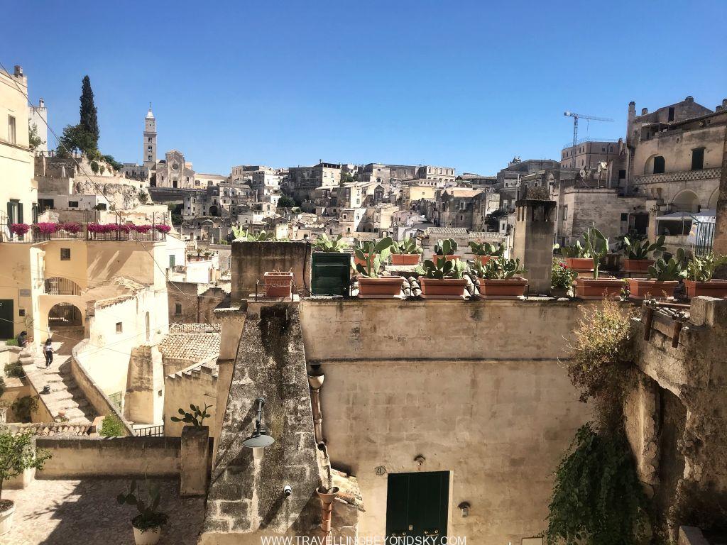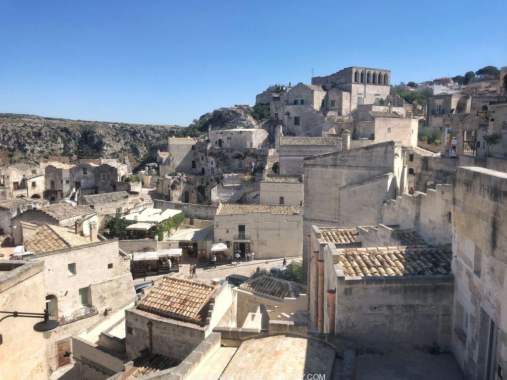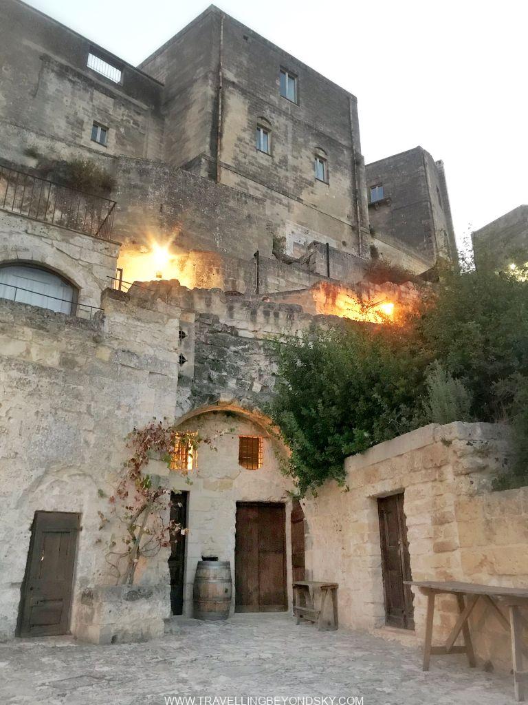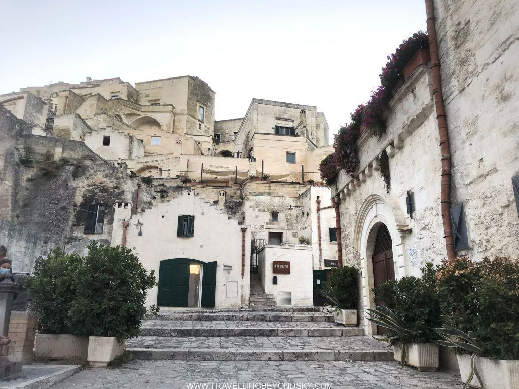 ส่วนข้อดีของโรงแรมอีกอย่างคือสามารถเดินขึ้นไปใจกลางเมืองสะดวกมาก ฉันชอบพวกถ้ำหรืออาคารเก่าที่เอามาดัดแปลงใช้งานมากๆ เมื่อมาเมืองที่ทั้งเมืองเป็นเมืองถ้ำแบบนี้ทั้งทีจึงทุ่มเวลาให้ทั้งวันเดินเล่นอยู่ที่ Sassi di Matera อย่างเดียวเลย ในเมืองมีที่เที่ยวพอควร มีโบสถ์ใหญ่ใจกลางเมือง Cathedral จากศตวรรษที่ 13 มีบรรดาโบสถ์ Rupestrian มากมายที่ควรเข้าไปชมให้หมด