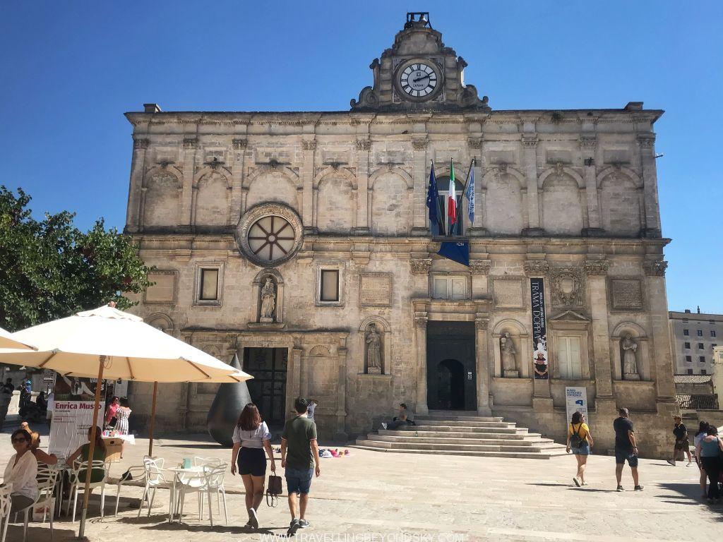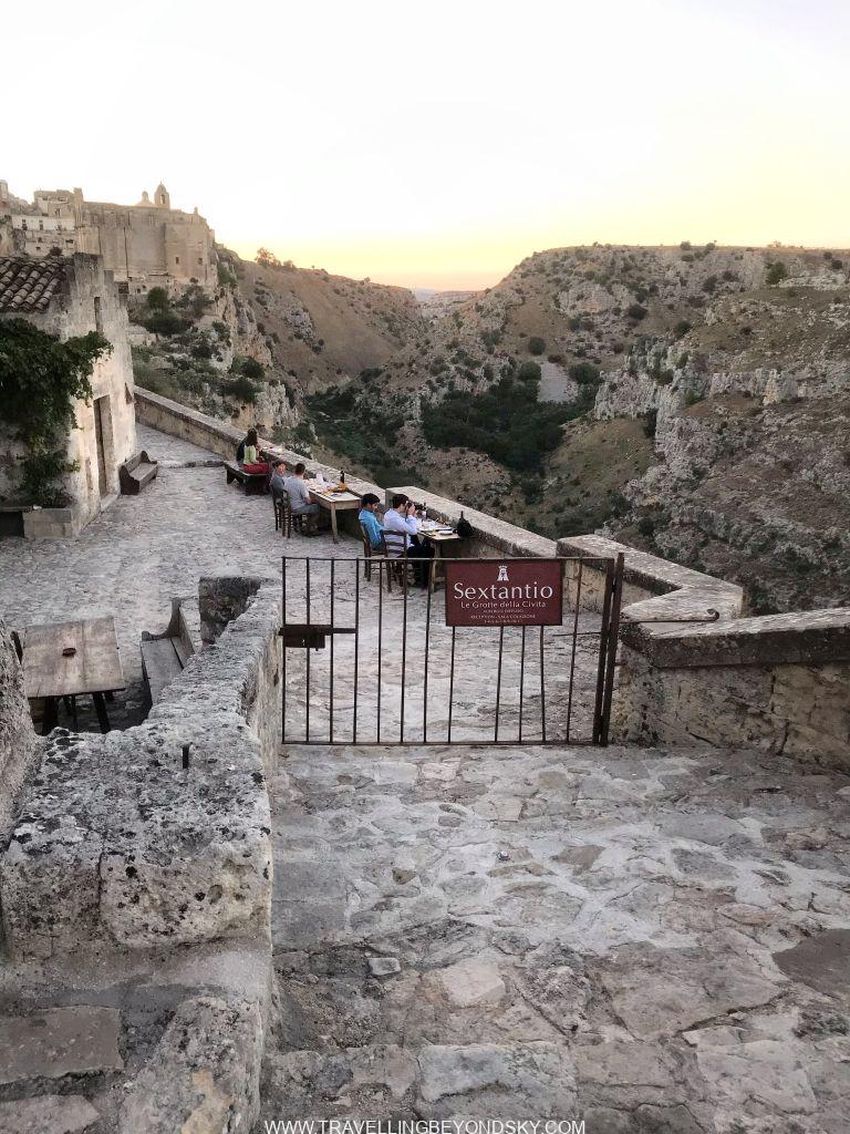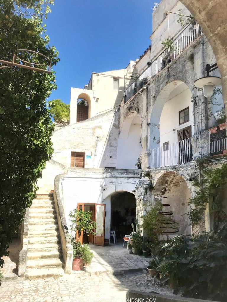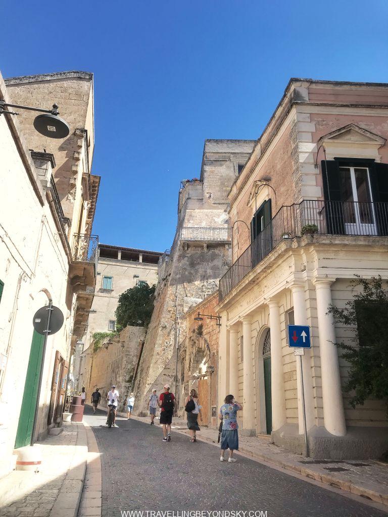 ส่วนข้อดีของโรงแรมอีกอย่างคือสามารถเดินขึ้นไปใจกลางเมืองสะดวกมาก ฉันชอบพวกถ้ำหรืออาคารเก่าที่เอามาดัดแปลงใช้งานมากๆ เมื่อมาเมืองที่ทั้งเมืองเป็นเมืองถ้ำแบบนี้ทั้งทีจึงทุ่มเวลาให้ทั้งวันเดินเล่นอยู่ที่ Sassi di Matera อย่างเดียวเลย ในเมืองมีที่เที่ยวพอควร มีโบสถ์ใหญ่ใจกลางเมือง Cathedral จากศตวรรษที่ 13 มีบรรดาโบสถ์ Rupestrian มากมายที่ควรเข้าไปชมให้หมด
