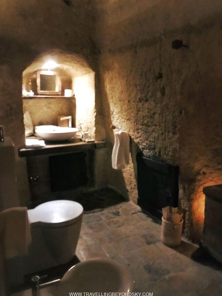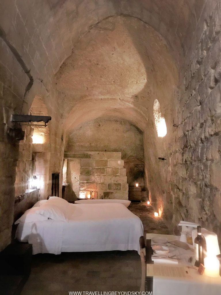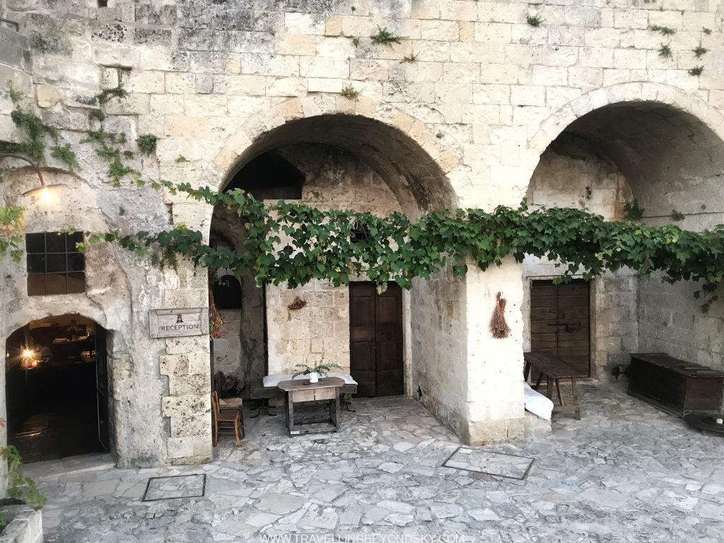 ฉันรีบเดินลากกระเป๋าทะลุเมืองเก่าขึ้นไปโรงแรมซึ่งอยู่ในถ้ำของ Matera Sassi เช่นกัน เป็นถ้ำเก่าที่แปลงมาเป็นโรงแรมเก๋ทันสมัย การตกแต่งสวยมากๆ ฉันตื่นเต้นสุดๆ เพราะโรงแรมนี้ก็จดไว้ในโพยมาหลายปีแล้วว่าจะต้องมาพักให้ได้ มาชมเมืองถ้ำก็ต้องมานอนในถ้ำสิ แถมเป็นถ้ำโบราณมรดกโลกอีก มันช่างตอบโจทย์โรงแรมแบบเหนือฟ้าเป็นที่สุด ในที่สุดฝันของฉันก็เป็นจริง