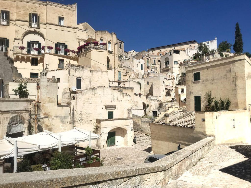 แต่ที่ฉันขอแนะนำมากๆ คือ ให้เดินสำรวจออกนอกเมืองไปนิด จะมีพวกถ้ำทั้งหลายที่มีคนอาศัยอยู่ในปัจจุบัน หรือที่ยังไม่บูรณะ มันน่าสนใจมาก ดีไม่ดีเจอคาเฟ่น่ารักๆ หรือบ้านคนน่ารักน่าถ่ายรูป หรือถ้าใครเดินเขาเก่งๆ แนะนำให้ข้ามไปฝั่งตรงข้าม Sassi เป็นภูเขาที่เดินไต่ขึ้นไปได้ เห็นมีถ้ำโบ๋ๆ อยู่เต็มเลย เขาเก็บไว้เป็นสวนป่าสาธารณะไม่ได้ดัดแปลงใช้งานแต่ให้ไปเดินชมวิวออกกำลังได้ ฉันไม่ได้เดินไปเพราะหน้าร้อนอากาศร้อนจนหมดแรง ได้แต่ยืนเล็งชมอยู่จากฝั่ง Sassi