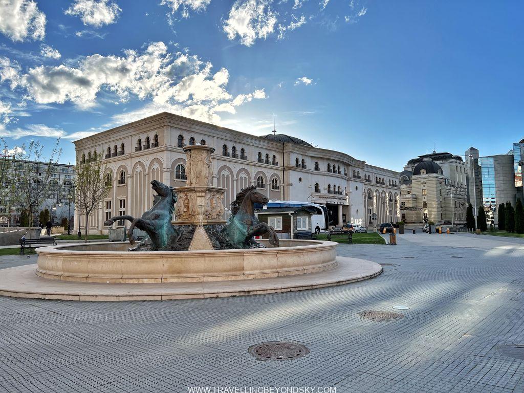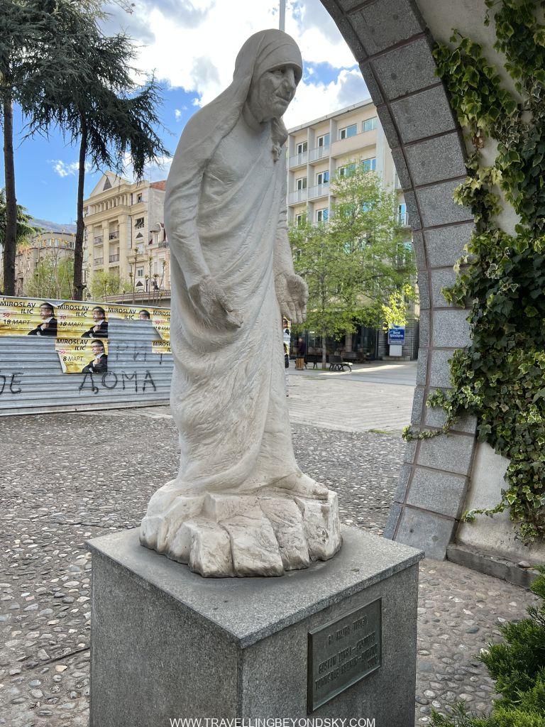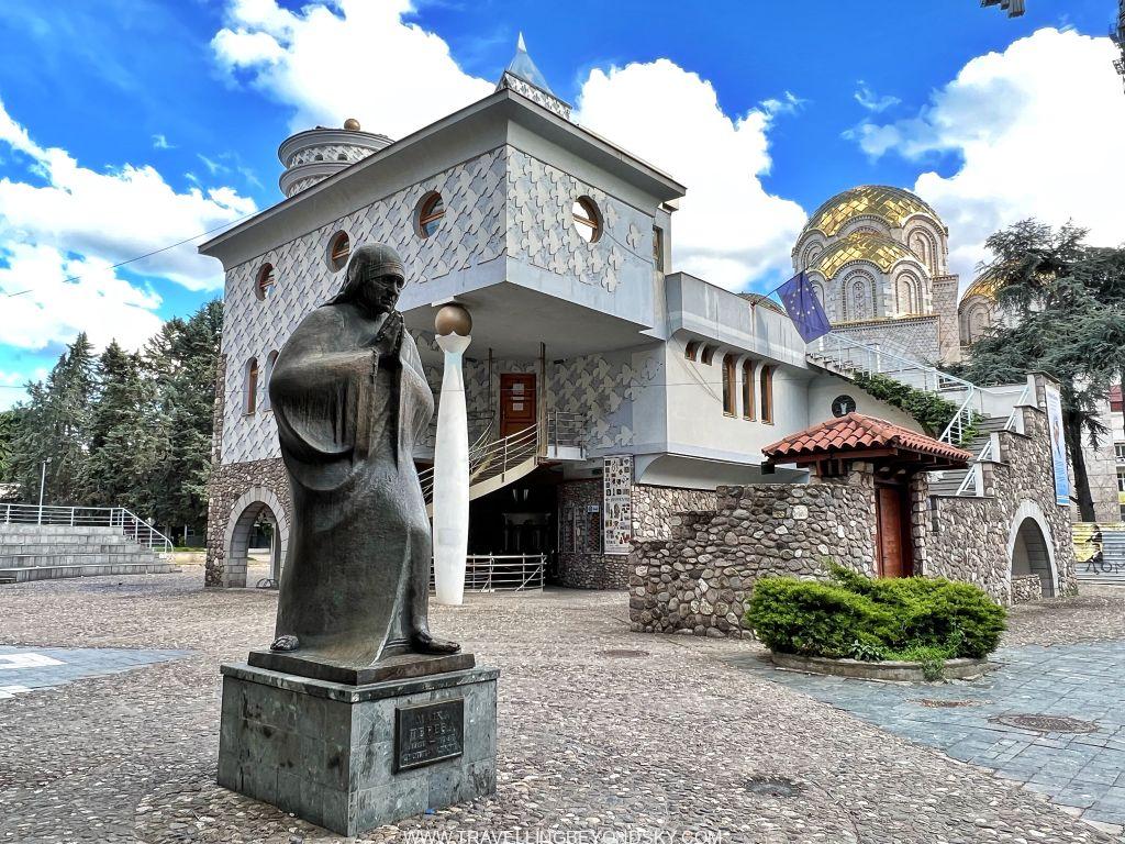 เมืองหลวงอันเป็นเมืองที่ใหญ่ที่สุดของประเทศด้วยคือ Skopje มีพลเมืองประมาณห้าแสนคน เมืองไม่ใหญ่สถานที่เที่ยวไม่มาก แต่ที่น่าสนใจที่สุดคือ เมืองสโกเปียนี้เป็นเมืองเกิดของแม่ชีเทเรซ่า อันที่จริงโดยเชื้อชาติท่านเป็นคนอัลเบเนียน แต่เกิดที่สโกเปียและโตที่นี่ สถานที่สำคัญแห่งหนึ่งของเมืองจึงคือ The Memorial House of Mother Teresa แต่ที่ตรงนี้ไม่ใช่บ้านเกิดท่าน หากเป็นอนุสรณ์สถานที่สร้างขึ้นมาเมื่อปี 2009 นี่เองบนจุดที่เคยเป็นโบสถ์ที่ทำพิธี Baptize ท่าน โรงแรมที่ฉันพักอยู่ใกล้สถานที่นี้มาก เดินไป 5 นาทีเอง แต่พอไปถึงกลับปิด เพราะเป็นวัน Good Friday พอดี รุ่งขึ้นฉันนึกจะกลับมาใหม่แต่เปลี่ยนใจ เพราะจริงๆ ชอบดูสถานที่โบราณที่มีประวัติศาสตร์จริงๆ มากกว่า เลยได้แต่ถ่ายรูปด้านนอกไว้