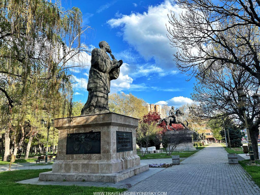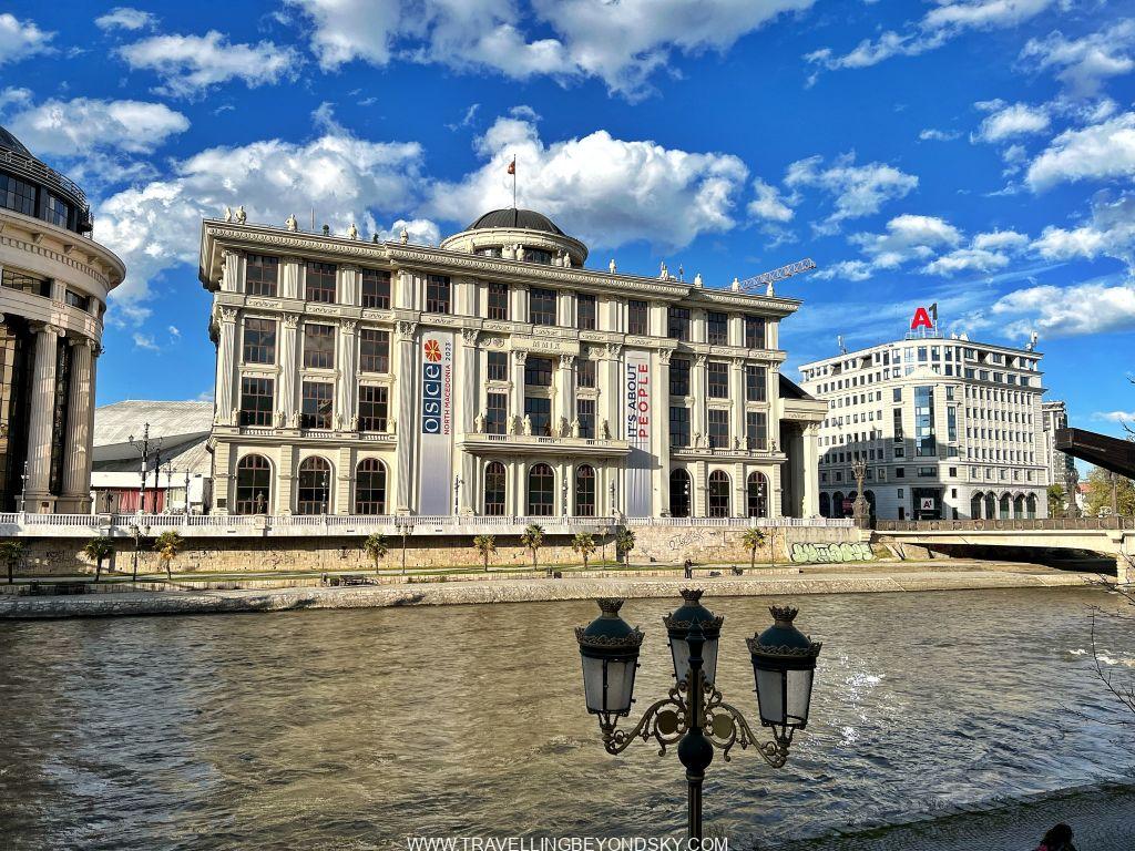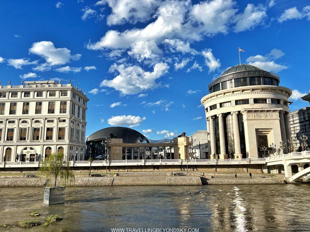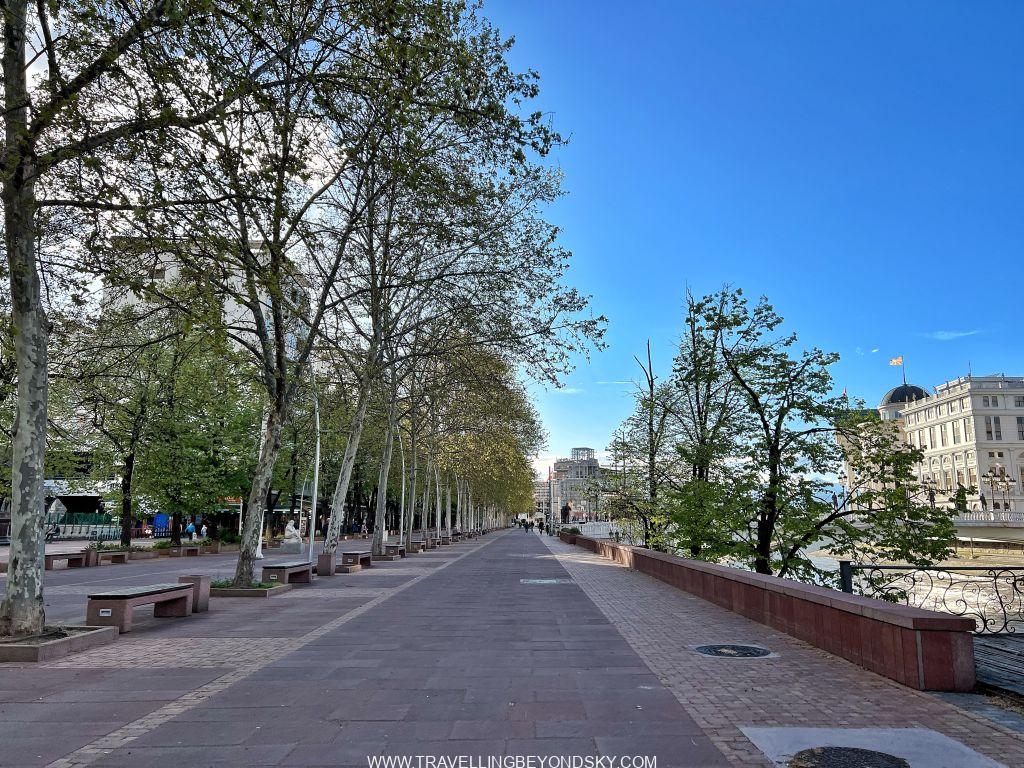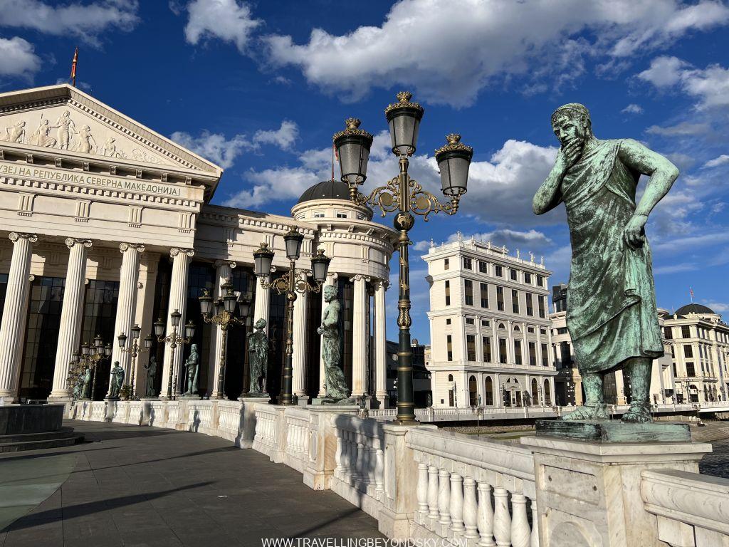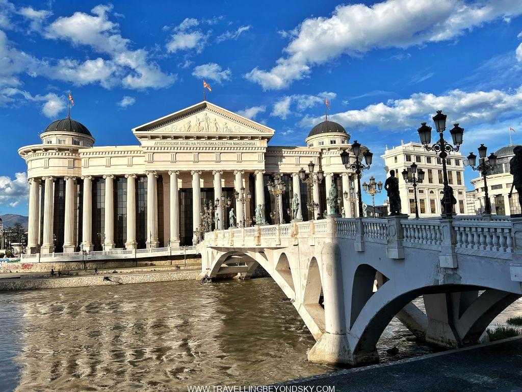 ฉันได้เดินชมเมืองสโกเปียเกือบทั่ว ในเมืองมีแม่น้ำ Vardar ไหลผ่าน จึงมีสะพานข้ามหลายแห่งที่ควรไปชม เช่น Art Bridge ที่มีรูปปั้นศิลปินสารพัดแขนงอยู่ถึง 29 รูปปั้น ติดกันคือ The Bridge of Civilisations in Macedonia มีรูปปั้นยืนเต็มสองฝั่งสะพานเช่นกัน ดูแปลกดี จะว่าสวยก็ไม่เชิง เมืองนี้เขาชอบรูปปั้นมากๆ เลย เต็มเมืองไปหมด ไม่ว่าจะในสวนสาธารณะ ริมถนน เยอะจนเกินพอดี เลยมีคนเหน็บเอาว่า นี่คือเมืองหลวงที่ kitsch ที่สุดในโลก สงสารจัง แต่ฉันก็รู้สึกอย่างนั้นเหมือนกัน