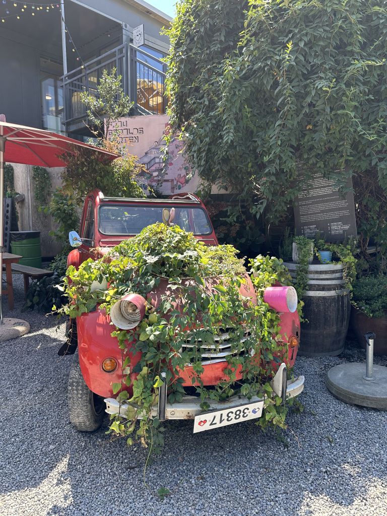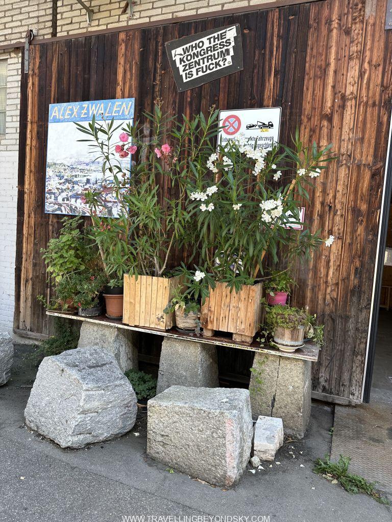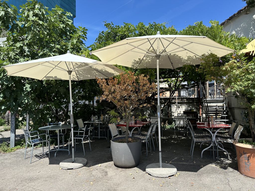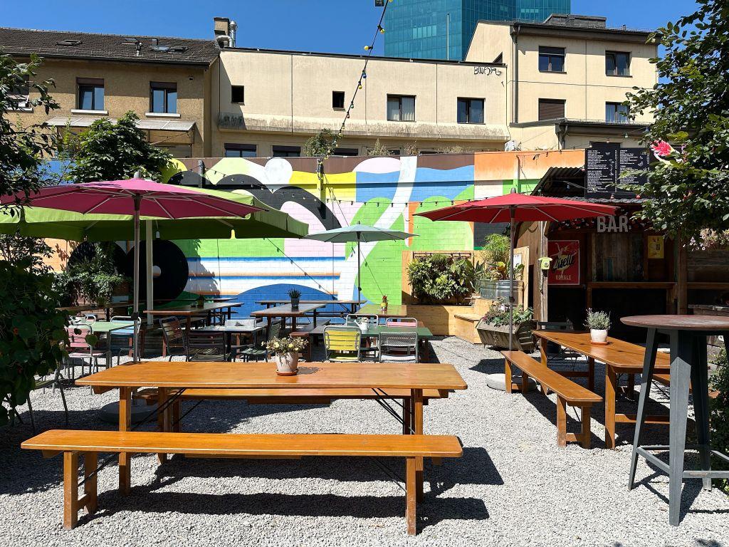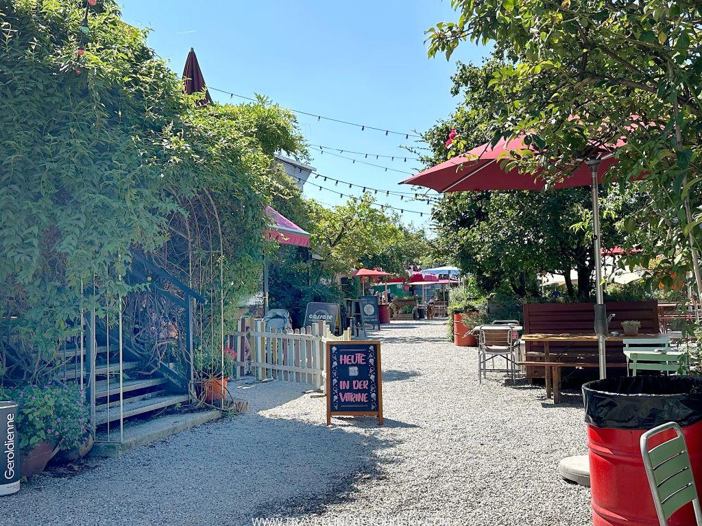 ในบริเวณนี้ยังมีร้านชื่อ Frau Gerold Garten ซึ่งเป็นพื้นที่ๆ มีโต๊ะเก้าอี้ม้านั่งกระจัดกระจายไปบนหินกรวดในสวน มีบาร์ มีซุ้มขายอาหารอยู่โดยรอบ อยากกินอะไรก็เดินไปซื้อแล้วมาเลือกที่นั่ง ด้านหน้ามีร้านขายไอศครีม ร้านขายเสื้อผ้านิดหน่อย เป็นที่ Hangout ดื่มกินของคนทำงานในย่านนี้ พอหน้าหนาวเขาก็จะเอาเต็นท์แบบมองโกเลียมาตั้ง ทำเป็นร้านอาหารขายชีสฟองดูว์ด้านในแล้วมีเตาผิงอยู่ด้วย ร้านนี้เป็นที่นิยมมาหลายปีเพราะเขามีอะไรเปลี่ยนแปลงให้น่าติดตามอยู่ตลอด อย่างปีที่แล้วก็เข้าร่วมเทศกาลอาหารของซูริค แล้วจัดเป็นโซนร้านอาหารป๊อบอัพหลายร้าน ฉันก็ซื้อตั๋วเข้ามากิน เก๋มากๆ