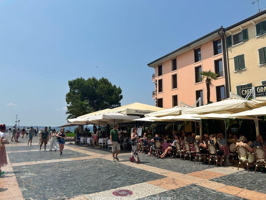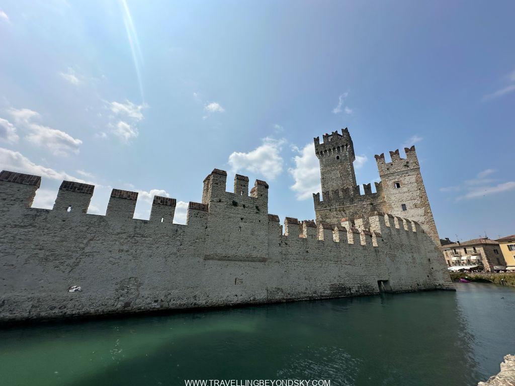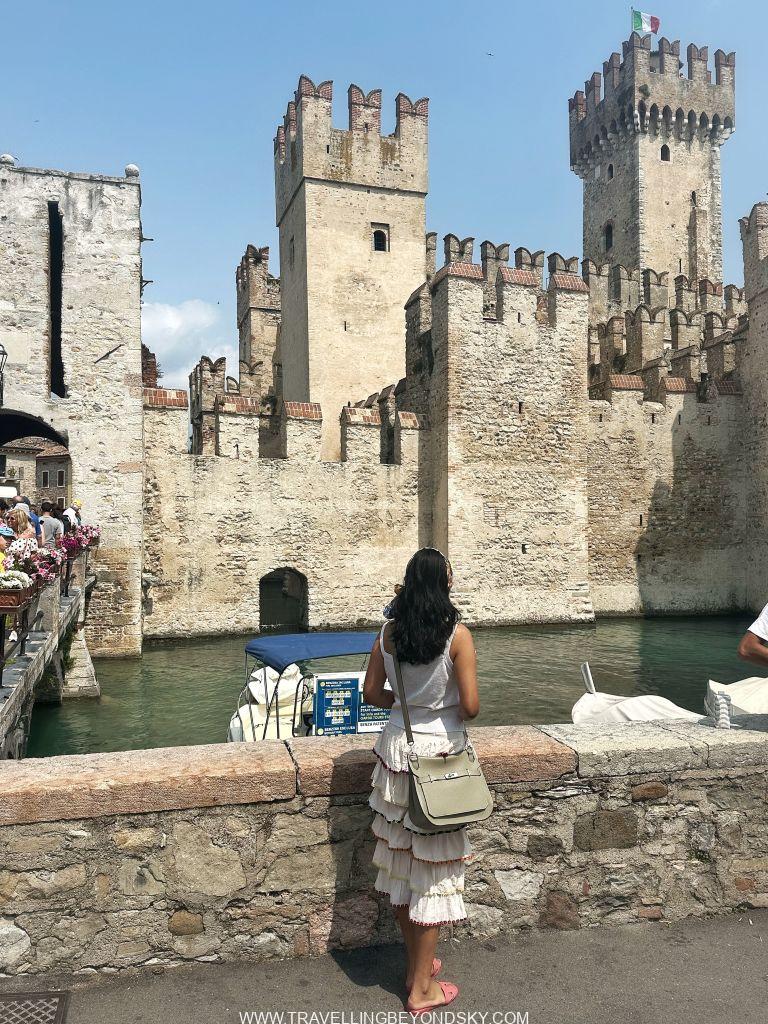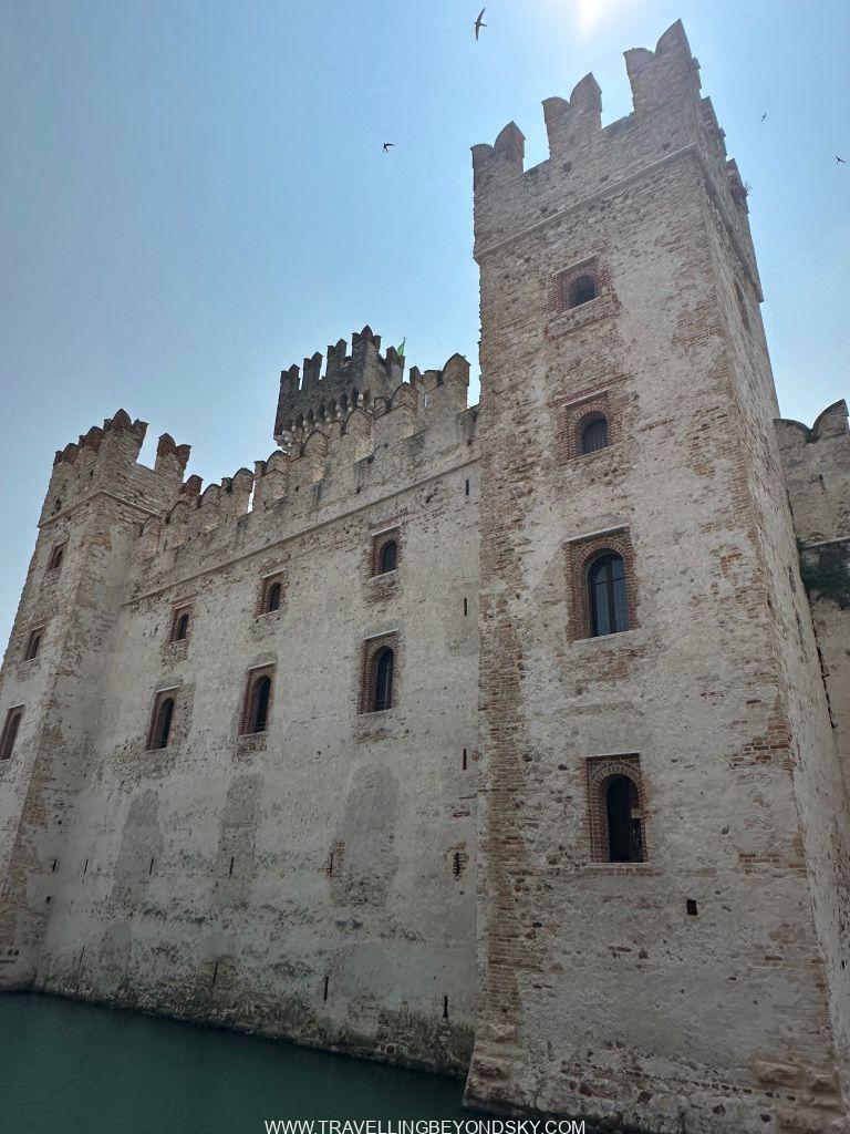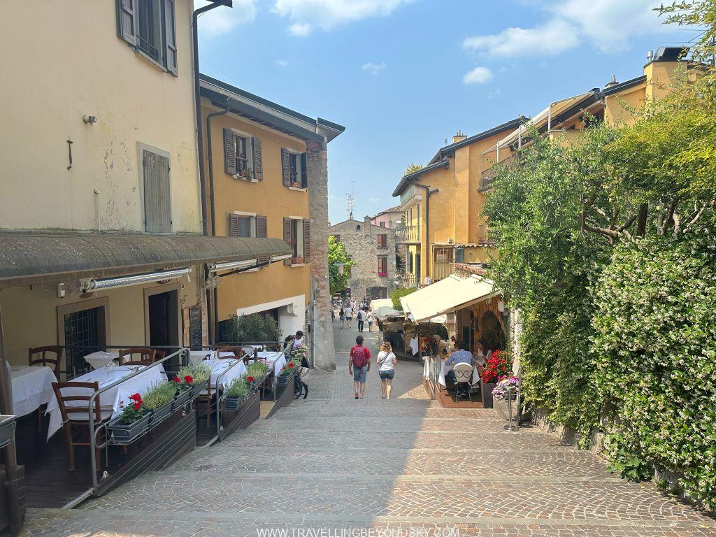 พอเข้าประตูเมืองไปแล้วก็จะถึงบริเวณเมืองเก่าซึ่งมีตึกรามสีสันสดใสตามแบบอิตาเลียน เต็มไปด้วยร้านอาหารร้านขายของ เดินเล่นเพลินมาก แต่ที่เด่นที่สุดนั้นก็คือ ตรงติดประตูเมืองเลยมีปราสาทโบราณตั้งอยู่ในน้ำ คือ Scaligero Castle มีลักษณะเป็นป้อมปราการจากยุคกลางที่ใช้ป้องกันเมืองโดยที่มีน้ำอยู่ล้อมรอบ และมีประตูที่ชักเป็นสะพานขึ้นลงได้ ปัจจุบันด้านในเป็นพิพิธภัณฑ์ ฉันไม่ได้เข้าไปชมเพราะคิวยาวมาก เวลาย่างเข้าหน้าร้อนที่อิตาลีนี่เมืองต่างๆ แบบนี้จะคนค่อนข้างแน่นเป็นปกติ