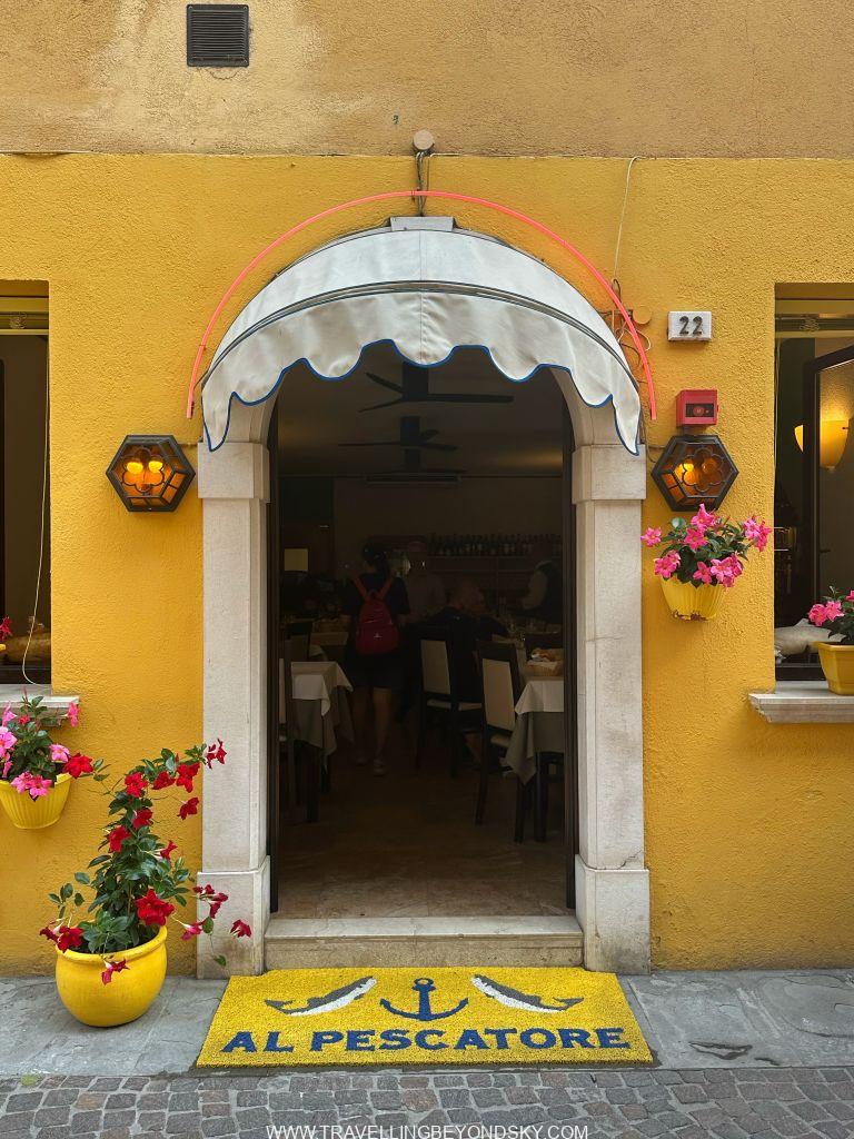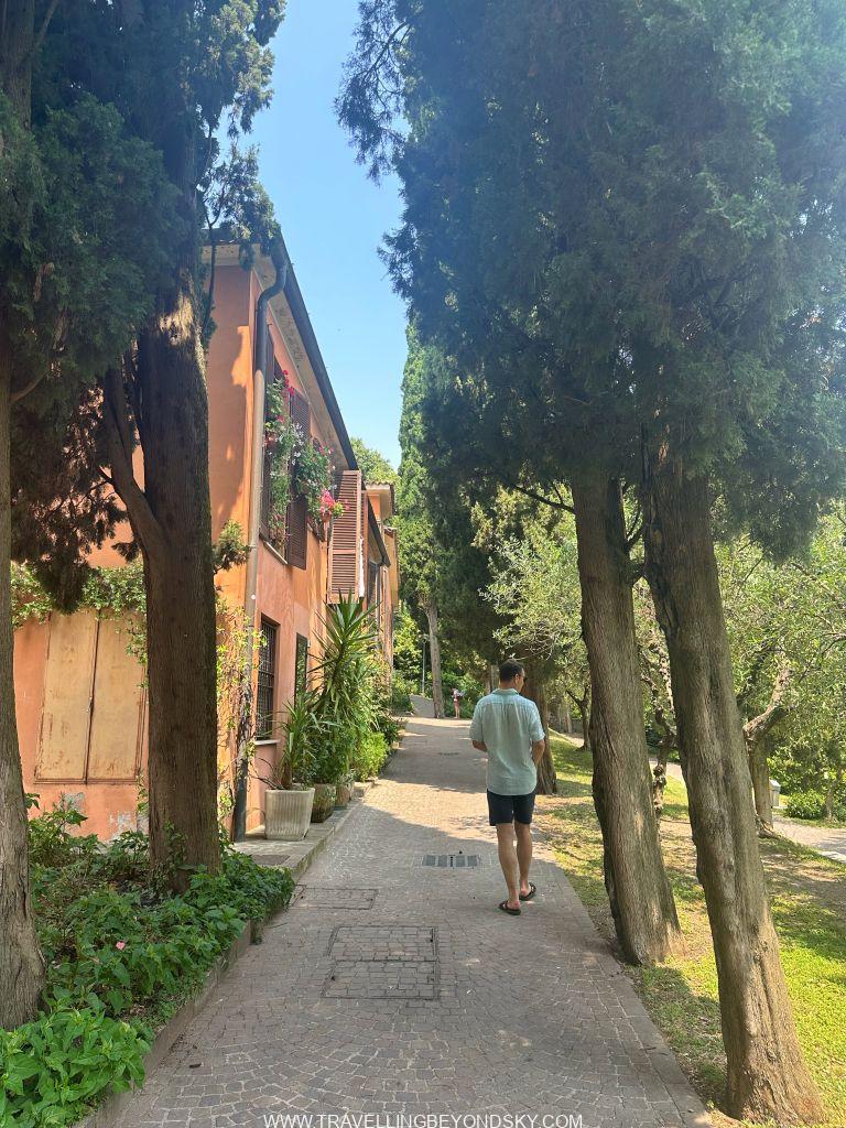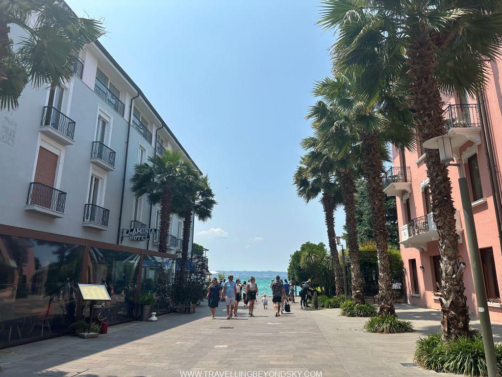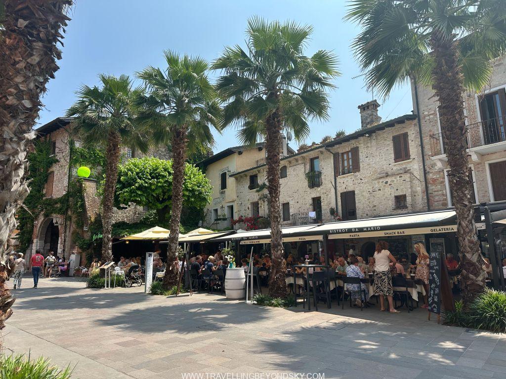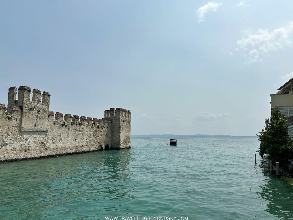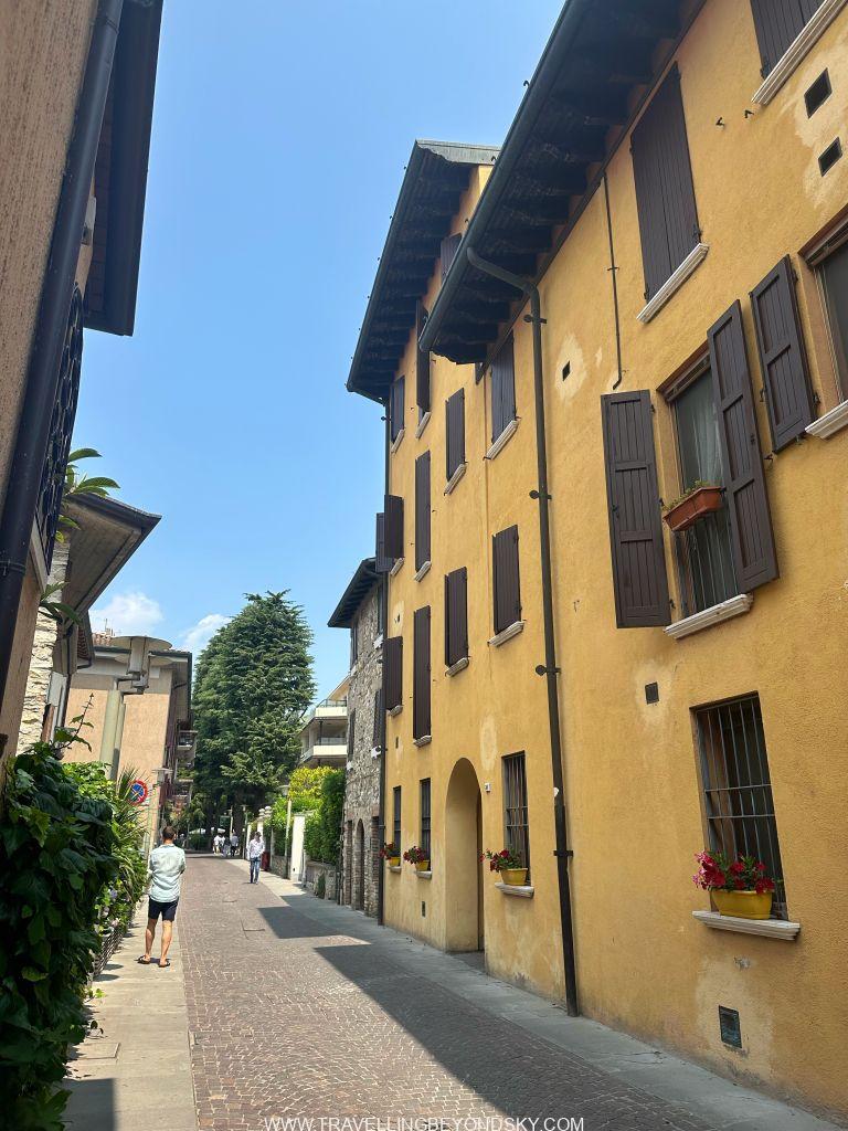 พอเข้าประตูเมืองไปแล้วก็จะถึงบริเวณเมืองเก่าซึ่งมีตึกรามสีสันสดใสตามแบบอิตาเลียน เต็มไปด้วยร้านอาหารร้านขายของ เดินเล่นเพลินมาก แต่ที่เด่นที่สุดนั้นก็คือ ตรงติดประตูเมืองเลยมีปราสาทโบราณตั้งอยู่ในน้ำ คือ Scaligero Castle มีลักษณะเป็นป้อมปราการจากยุคกลางที่ใช้ป้องกันเมืองโดยที่มีน้ำอยู่ล้อมรอบ และมีประตูที่ชักเป็นสะพานขึ้นลงได้ ปัจจุบันด้านในเป็นพิพิธภัณฑ์ ฉันไม่ได้เข้าไปชมเพราะคิวยาวมาก เวลาย่างเข้าหน้าร้อนที่อิตาลีนี่เมืองต่างๆ แบบนี้จะคนค่อนข้างแน่นเป็นปกติ