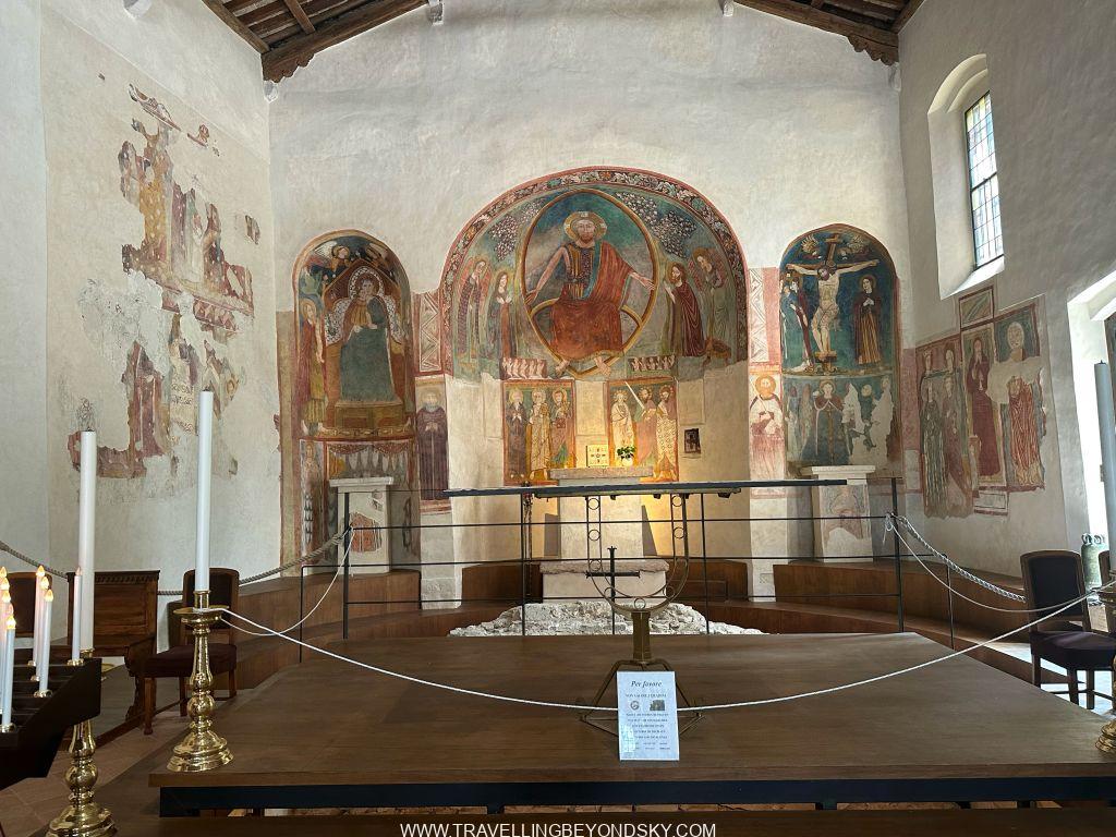 นอกจากปราสาทและเมืองเก่าแล้ว หากเดินลึกเข้าไปเรื่อยๆ ก็จะเจอสวนสาธารณะใหญ่เต็มไปด้วยต้นไม้ร่มรื่น มีหาดหลายแห่งให้เล่นน้ำได้ และที่น่าแปลกใจคือมีอพาร์ทเม้นท์อาคารบ้านเรือนคนที่อาศัยอยู่จริงๆ ไม่ใช่สถานท่องเที่ยวอยู่เยอะมาก โรงแรมก็เยอะ ไม่น่าเชื่อเลยว่าผืนแผ่นดินที่เหมือนจะไม่ใหญ่นี้อัดแน่นไปด้วยตึกรามบ้านเรือน ใช้เวลานานทีเดียวกว่าจะเดินสำรวจทั่วแต่ก็เพลินดีมาก บนเกาะมีโบสถ์หลายแห่งที่น่าชม เช่น Sant’Anna della Rocca เป็นโบสถ์เล็กที่อยู่ใกล้ป้อมปราการด้านหน้า ตรงลึกเข้าไปบริเวณที่เป็นบ้านคนมีโบสถ์ San Pietro in Mavino ซึ่งมีจิตรกรรมฝาผนังตั้งแต่ศตวรรษที่ 12 อยู่ ฉันว่าสวยมากๆ เลย ใครไปเที่ยวแถวนี้แนะนำเลยว่าให้ไปเดินเล่น Sirmione สักหนึ่งวันเต็มๆ จะเลือกพักโรงแรมในเมืองเก่าหรือบริเวณแหลมที่ยื่นเข้าไปในเกาะทะเลสาบก็ได้ แต่บอกเลยว่าโรงแรมยิ่งใกล้ Sirmione ก็ยิ่งแพงมากๆ แพงหูฉี่หูดับ และถ้าเป็นช่วงหน้าร้อนที่พีคจัดเช่นเดือนกรกฎาคมนี่เตรียมใจไว้เลยว่า คนจะแน่นมากขนาดที่ต้องเดินเบียดๆ ไหลๆ กันไปทีเดียว สามีฉันเคยมาช่วงนั้นบอกว่าไม่สนุกเลย และราคาทุกอย่างน่าจะดีดขึ้นไปเยอะมากด้วย แนะนำว่า ให้ไปเที่ยวไม่เกินช่วงต้นมิถุนายนหรือจะรอให้ปลายๆ หน้าร้อนไปแล้วช่วงปลายสิงหาคมหรือกันยายนน่าจะดีกว่า