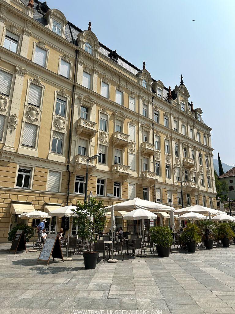 จากทะเลสาบเรามาแวะเมือง Merano เป็นเมืองในอิตาลีเขต South Tyrol เกือบจะติดกับชายแดนของออสเตรีย คนส่วนมากในเมืองจึงพูดภาษาเยอรมันกันทั้งๆ ที่อาหาร บรรยากาศยังมีอารมณ์อิตาลีอยู่ แปลกดี เมืองนี้เป็นเมืองตากอากาศที่ขึ้นชื่อเรื่องสปาและเวลล์เนสเพราะมีน้ำแร่ธรรมชาติ ใจกลางเมืองมีเวลล์เนสใหญ่ประกอบด้วยสระว่ายน้ำหลายสระเป็นคอมเพล็กซ์ใหญ่ จึงเป็นเมืองตากอากาศที่นิยมแห่งหนึ่งในย่านนี้มาแต่โบราณ